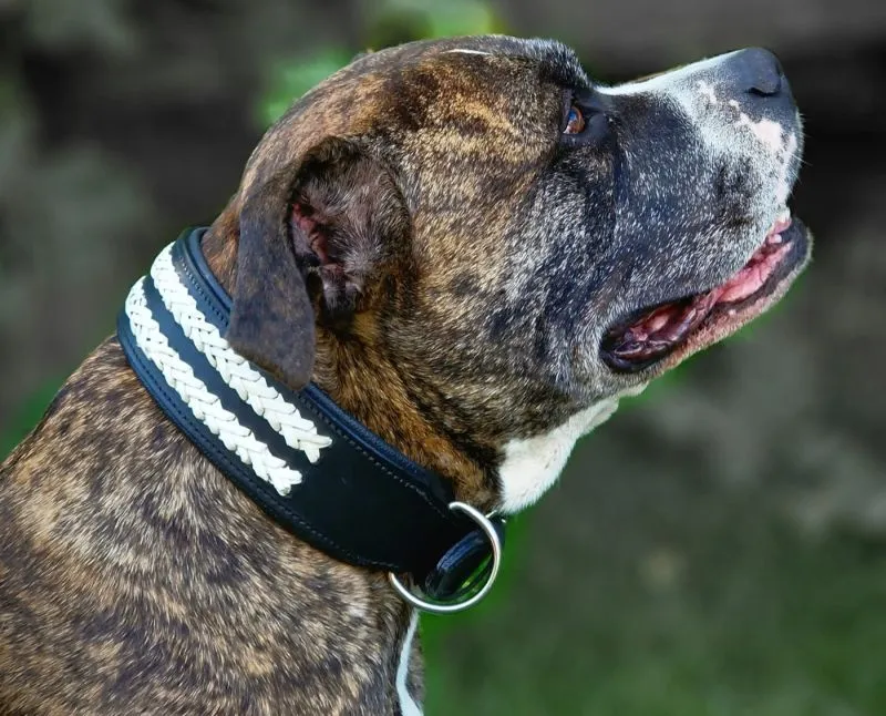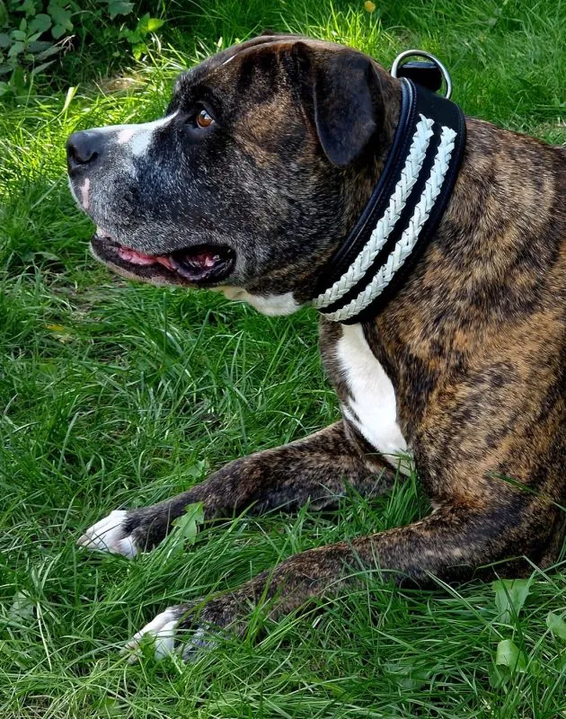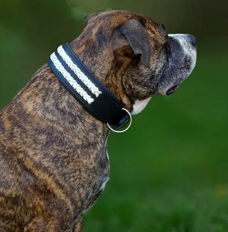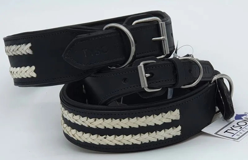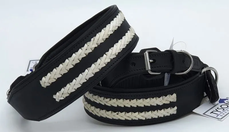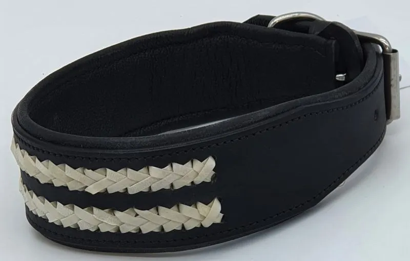 Ruffle Lederhalsband Leder Schwarz Breit Hohe Zugkraft doppelte Zierkordel Weiß / Creme LEDER Breit sehr stabil M L XL