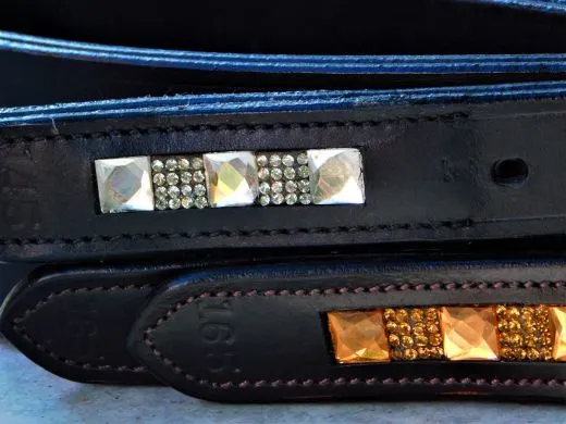 | Modell Braun : Glitzer in Braungold Farben Modell Schwarz : Glitzer Silberfarben Glitzer ist Plan. Glitzer = ~ 5 cm lang. Am ENDE des Riemens. | |||||