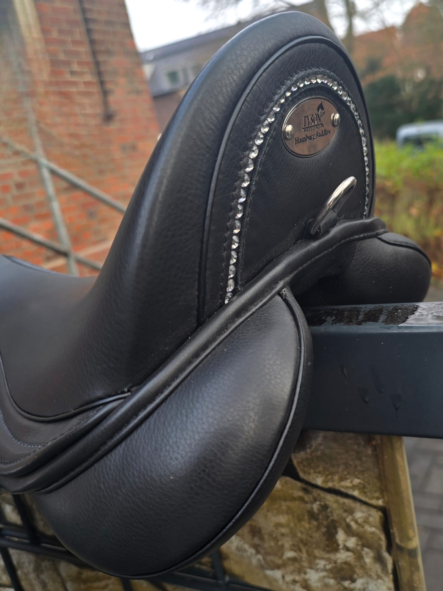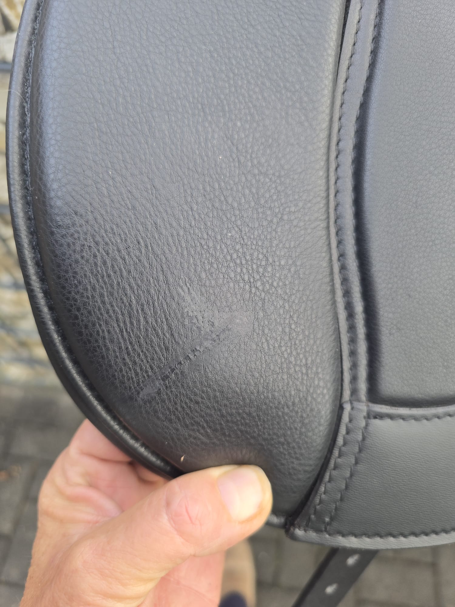Inclusive 5 X Kopfeisen - Kinderleicht umzubauen! ( Kopfeisen 1 X verbaut) Der Sattel hat " richtige Kissen " Scheifriemenöse + D- Ringe zum befestigen von Hilfszügeln. Schwarzes WEICHES Rindsleder. Hinten am Sattel -Hinterzwisel / Efter : Glitzerbogen Unter dem Sattelblatt befinden sich 2 Gurtstrupfen je 2,5 cm breit. Sowie eine je eine kleine Kniepausche, diese ist verstellbar mittels Klett. ( Klettpauschen) Maße von unten = Auflagefläche : CIRCA Maße !