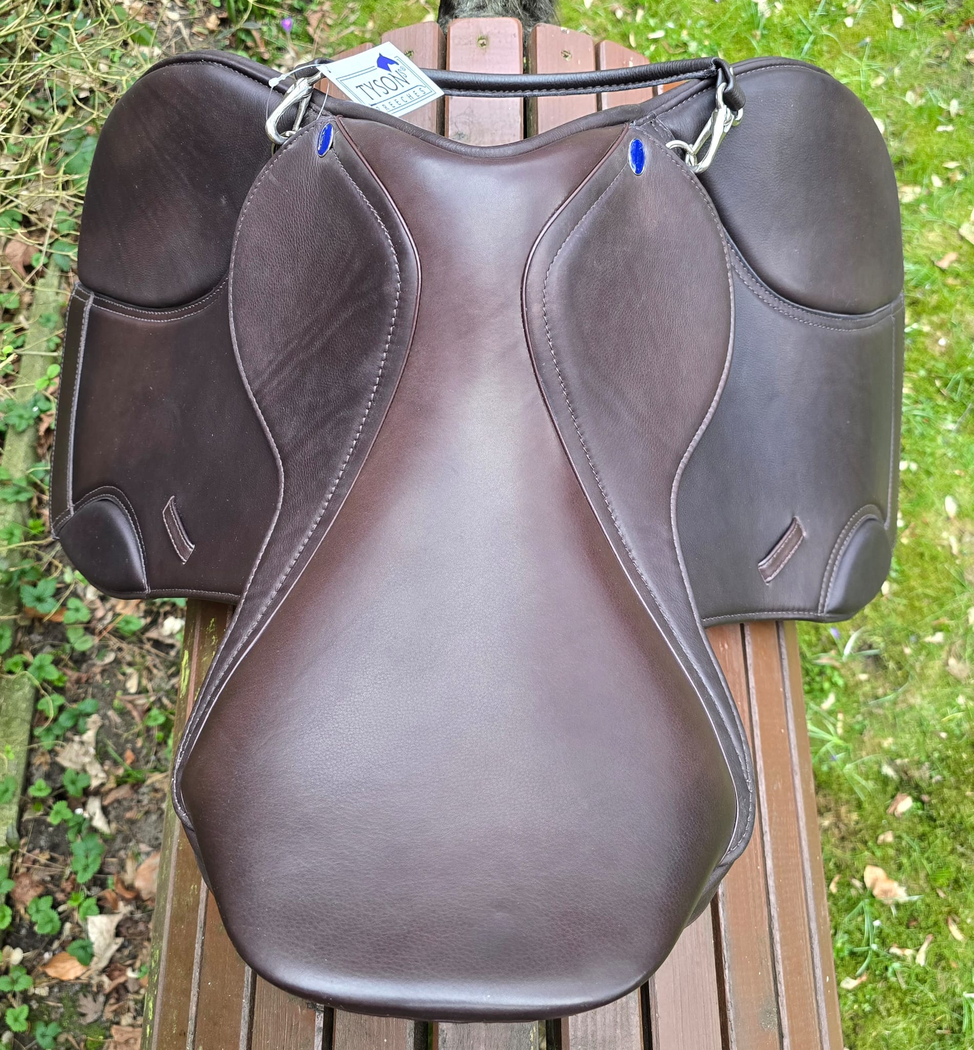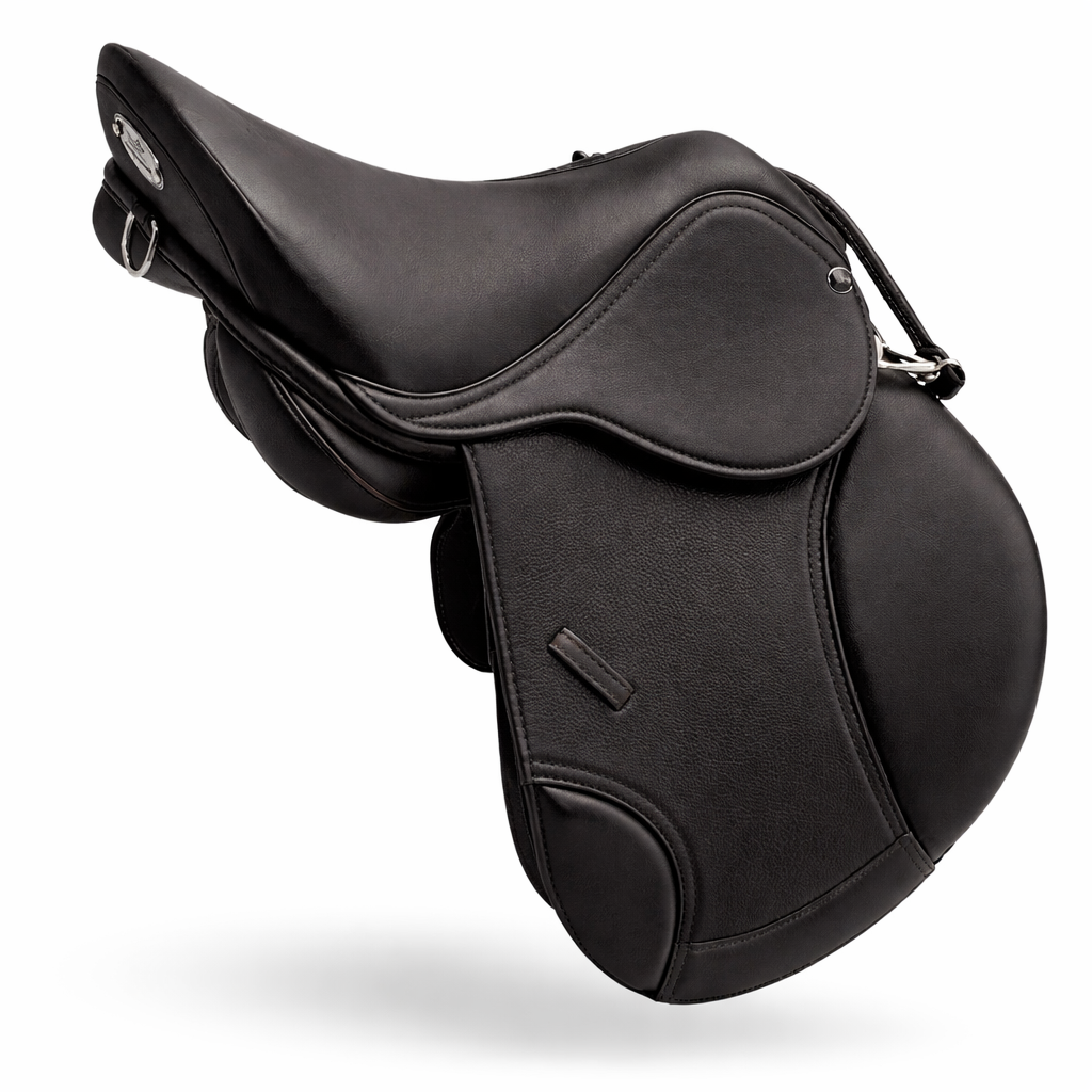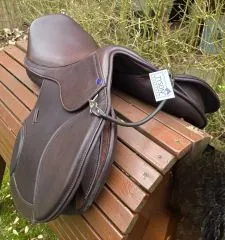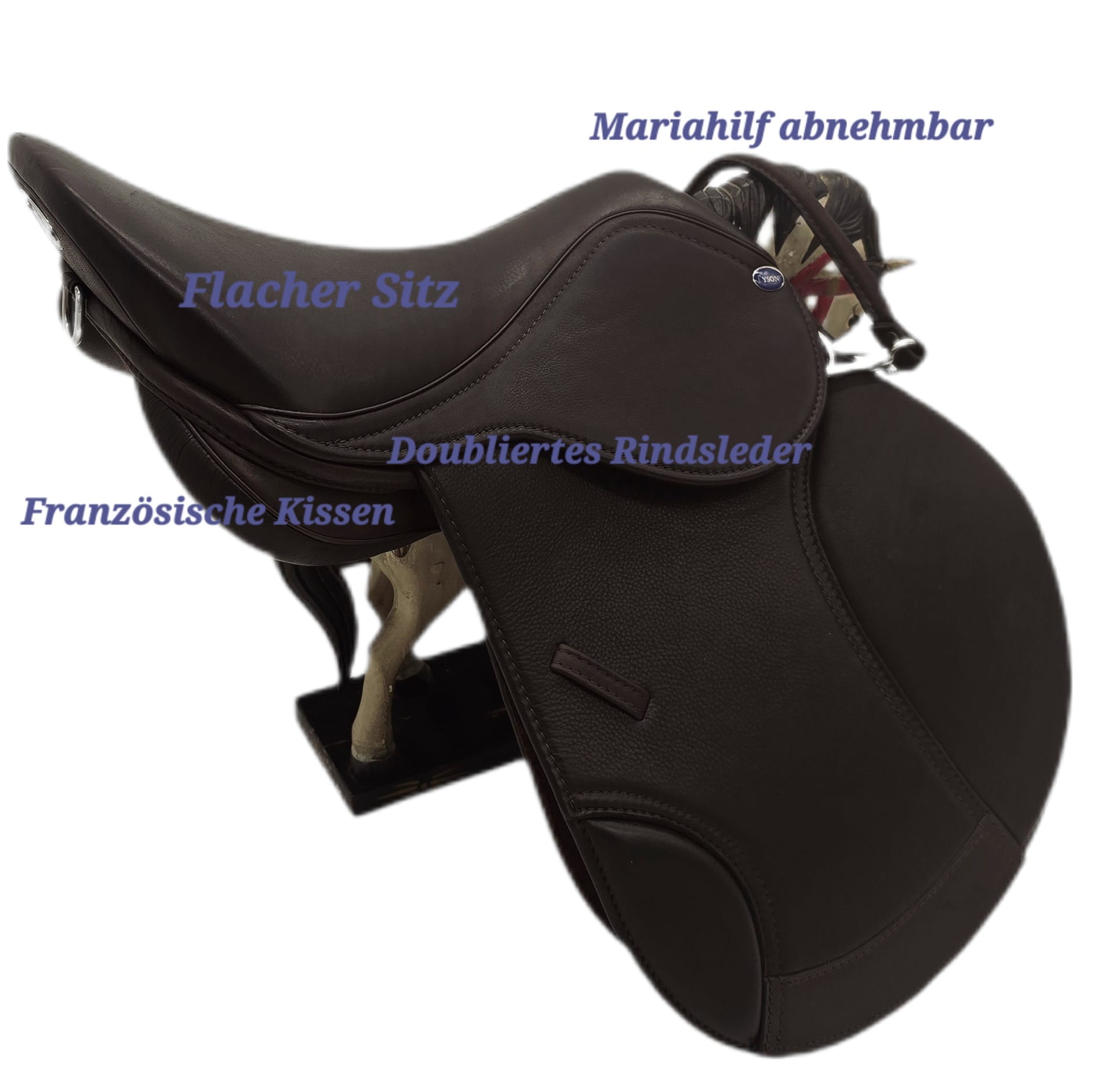 Leder Sattel JUMP DOUP Springsattel Springen + Kopfeisen Kindersattel Jugendsattel Ponysattel Braun 14 /15 Zoll doubliertes Leder