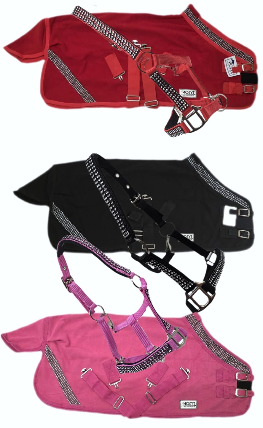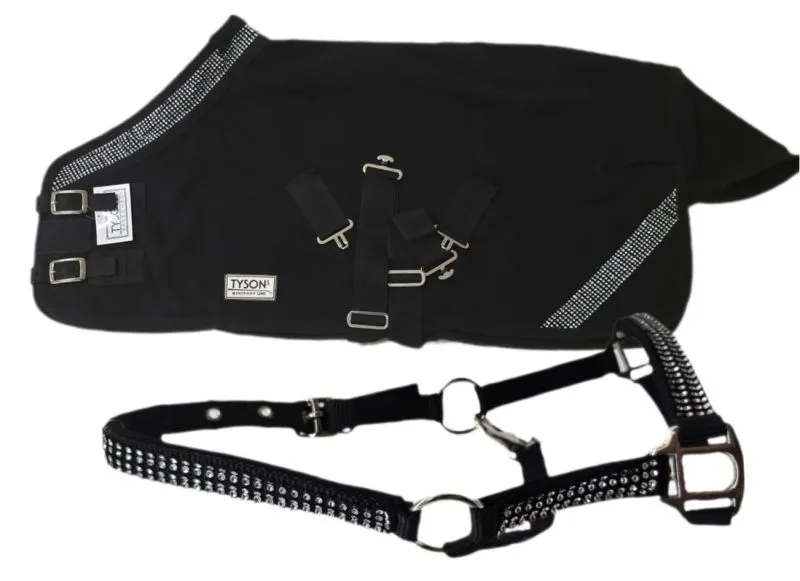Zoe Set Abschwitzdecke mit Halfter / Glitzer Mini-Shetty / Shetty Set – Fleece-Abschwitzdecke mit Glitzer & passendem Halfter