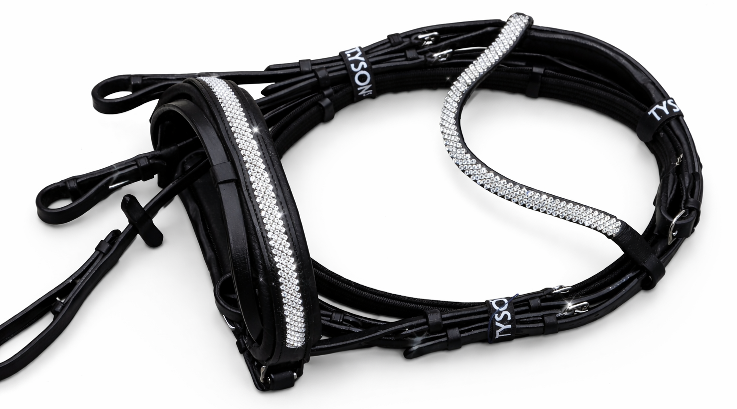 Ob im Alltag oder auf dem Turnier – diese englisch kombinierte Trense mit Strass ist ein echter Blickfang.