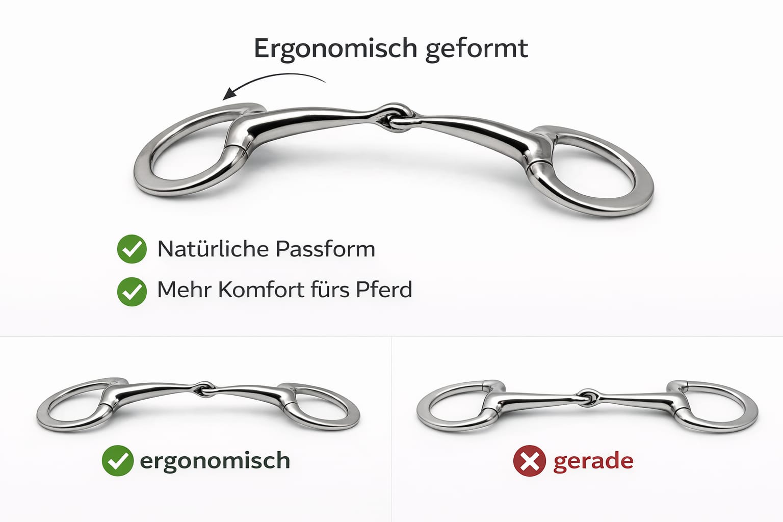 Durch die feste D-Ring-Form liegt das Gebiss besonders ruhig im Maul und sorgt für eine klare seitliche Begrenzung. Das unterstützt eine sichere Führung und gibt gerade kleinen oder sensiblen Ponys mehr Orientierung.