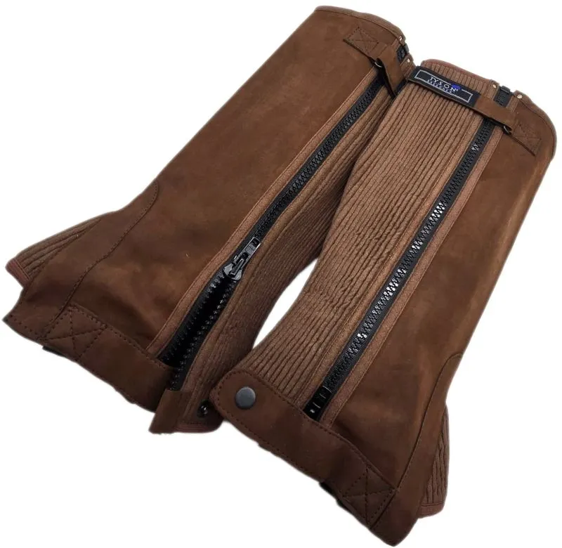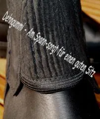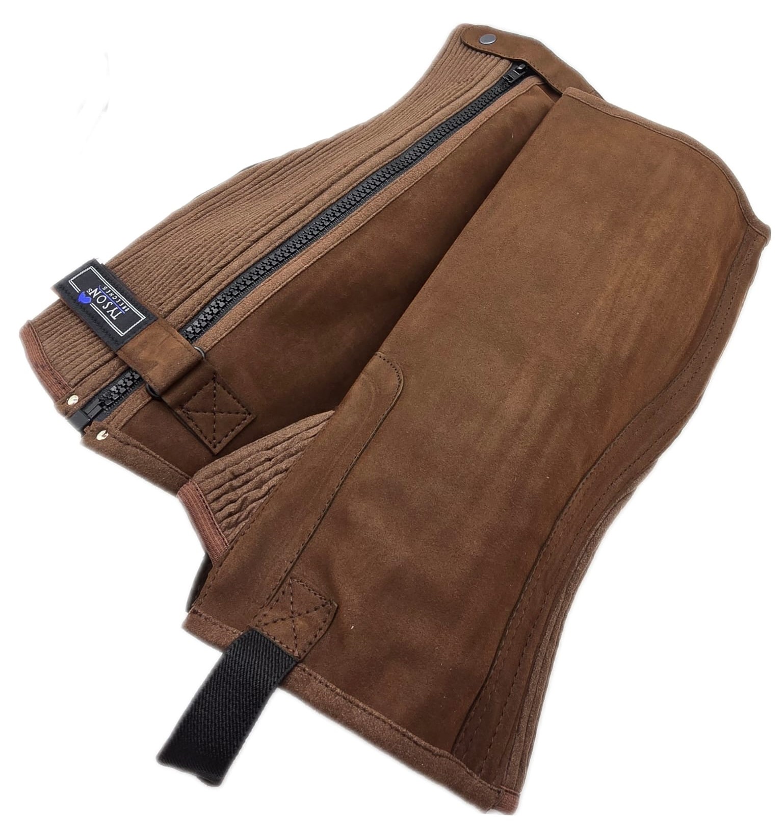 Mini Chaps mit einem durchgehenden Elastik Einsatz. Auch für die STARKE Wade- habe wir die richtigen Reitchaps. | ||||||||
