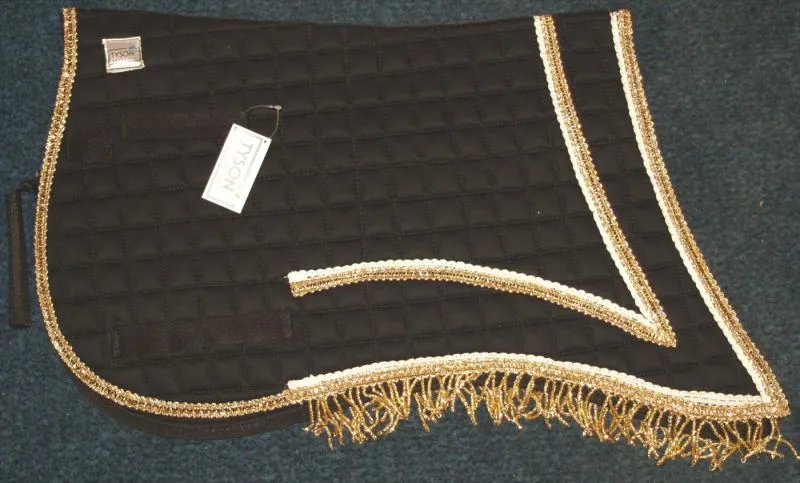 Antik Stepp Schabracke mit Schwalbenschwanz Mit feiner Gold / Weiß Farben Biese und Bördüre. Goldige Franzen. Klett um den Sattel zu fixieren. | |||||