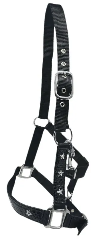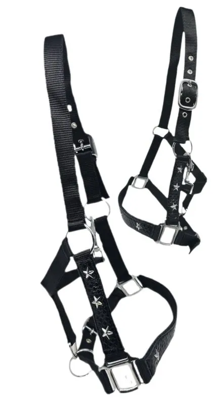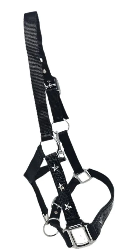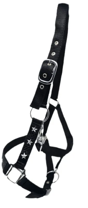 Halfter - Nylon Lack + Sternchen Stabiles Halfter, Stallhalfter. Verschnallung - Silberfarben- Rostfrei Genick- Nasenriemen- verstellbar