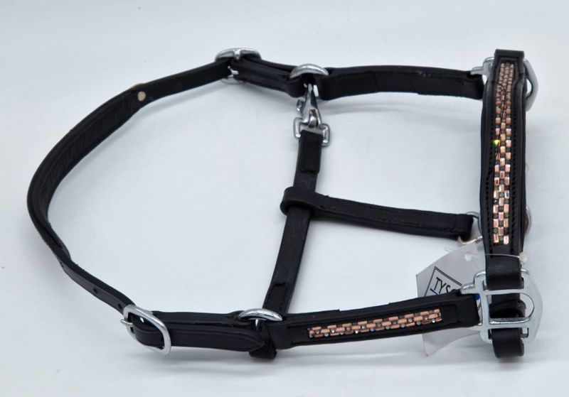 Mini Shetty / Shetty Lederhalfter - Glitzer an dem Nasenriemen und an beiden Seitenteilen |
