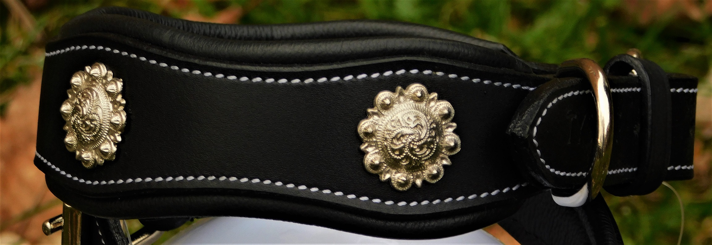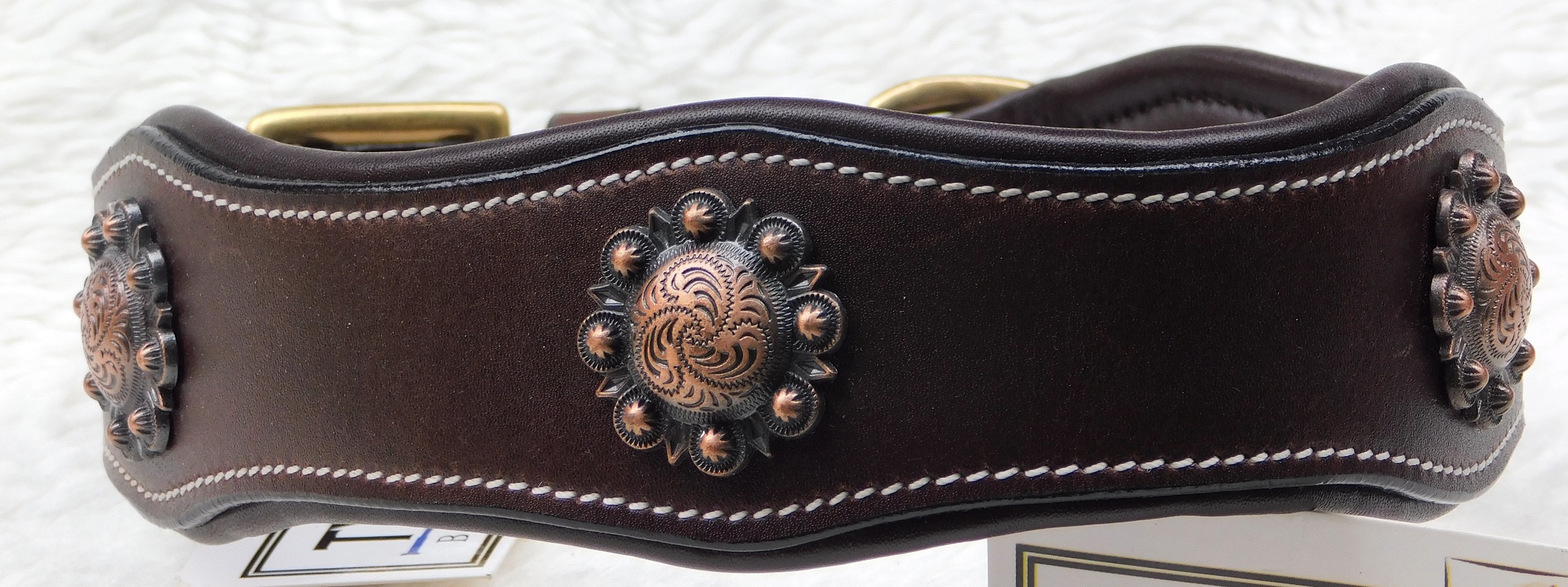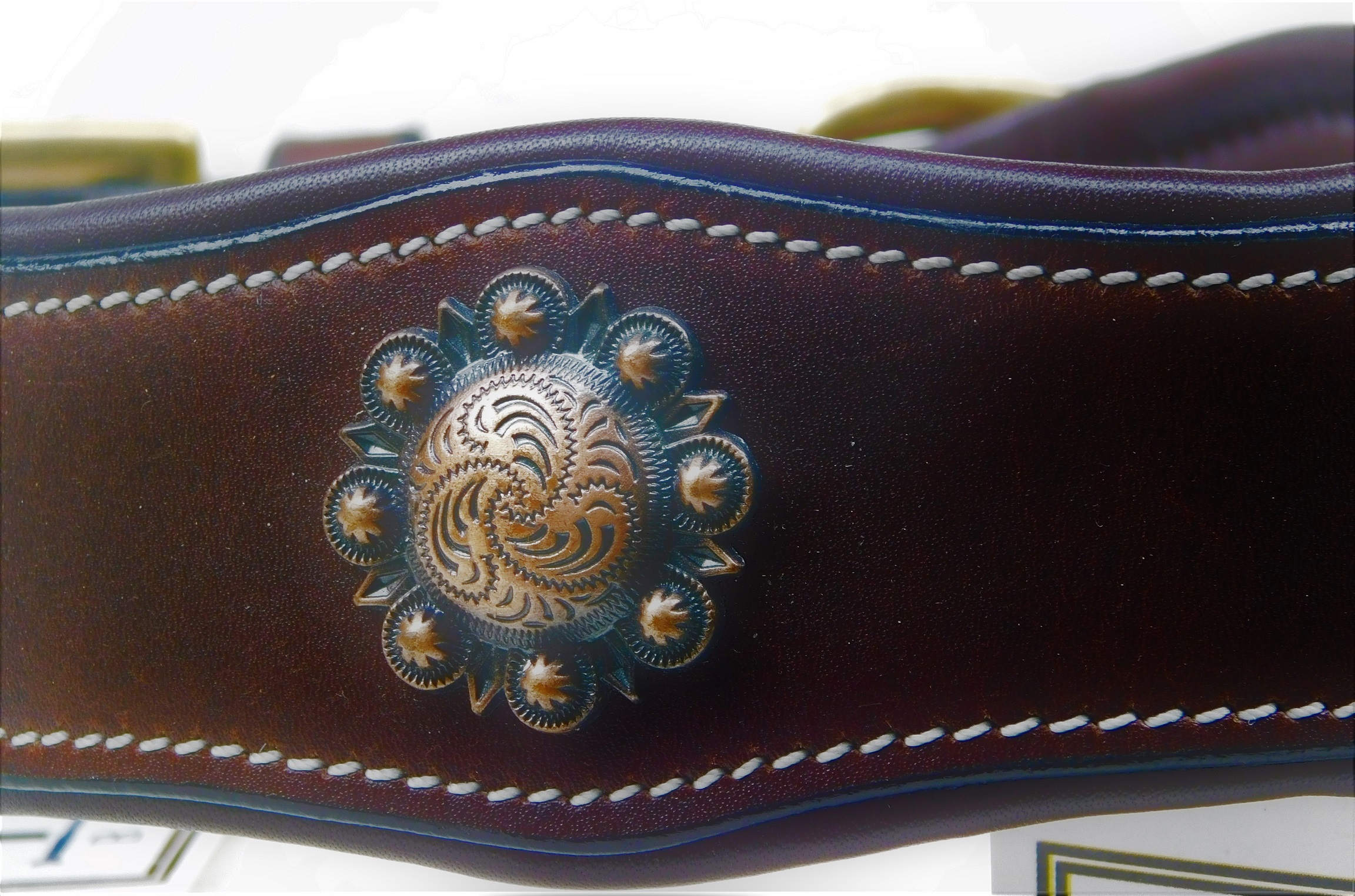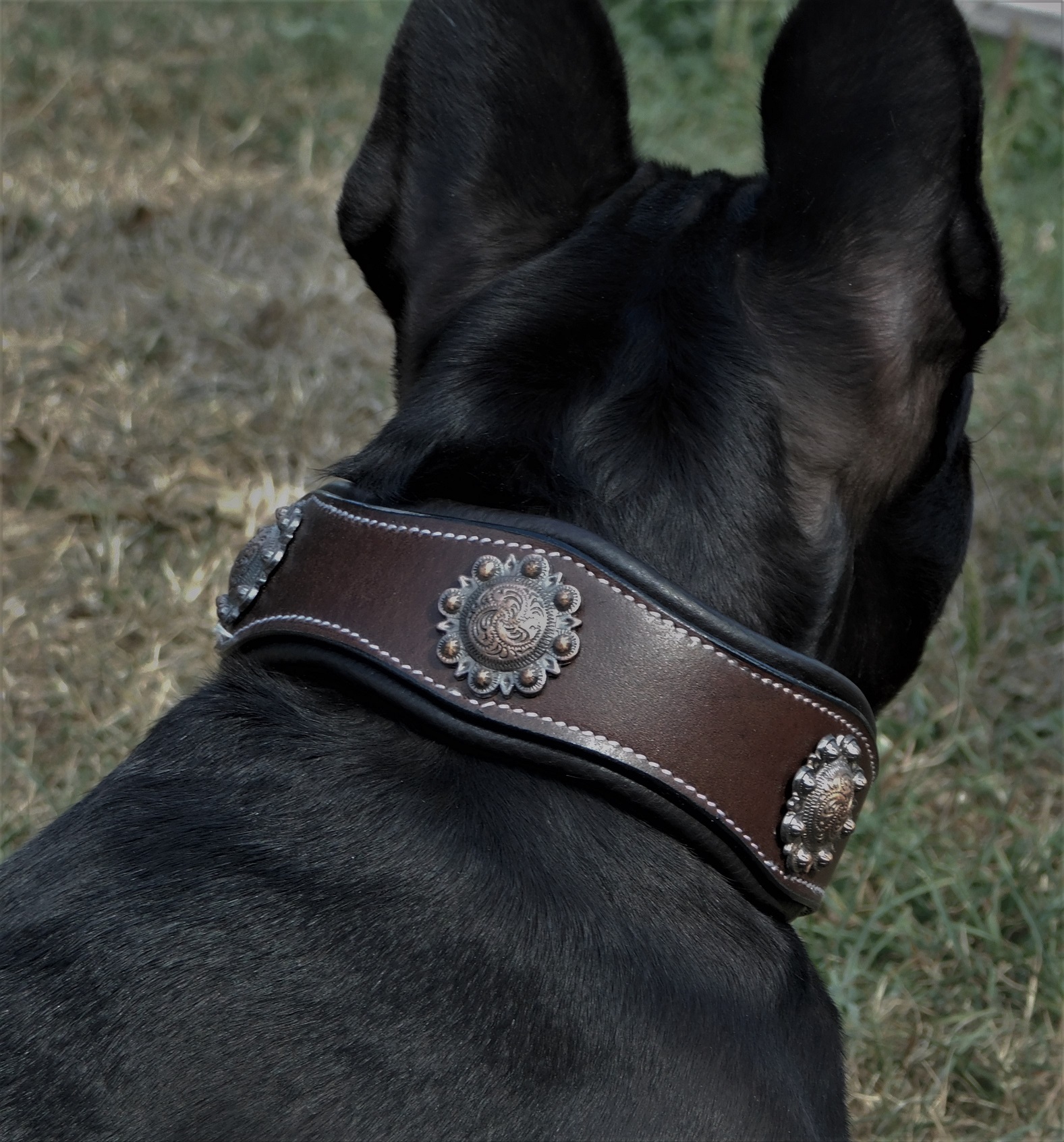 WAVE Halsband LEDER Braun- in Wellen Form mit Conchos in Sonnenform.