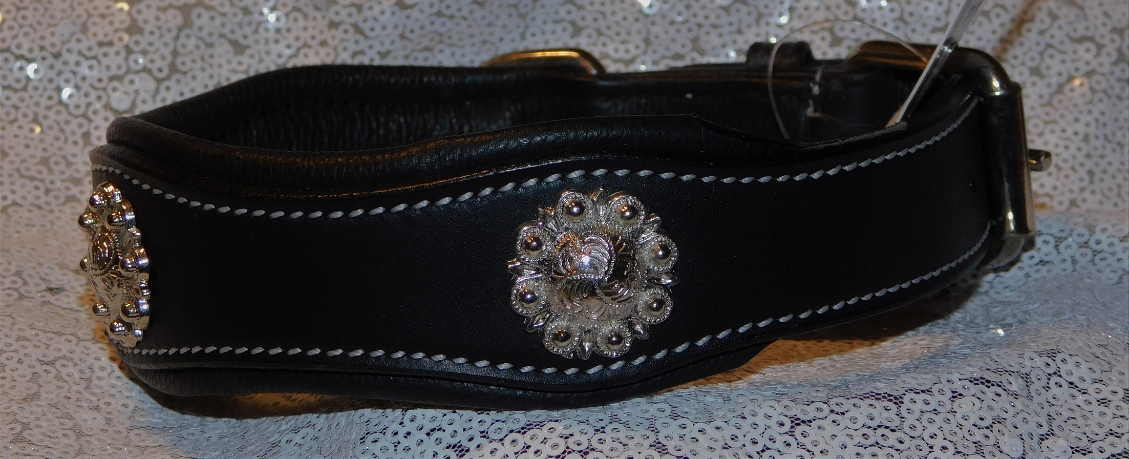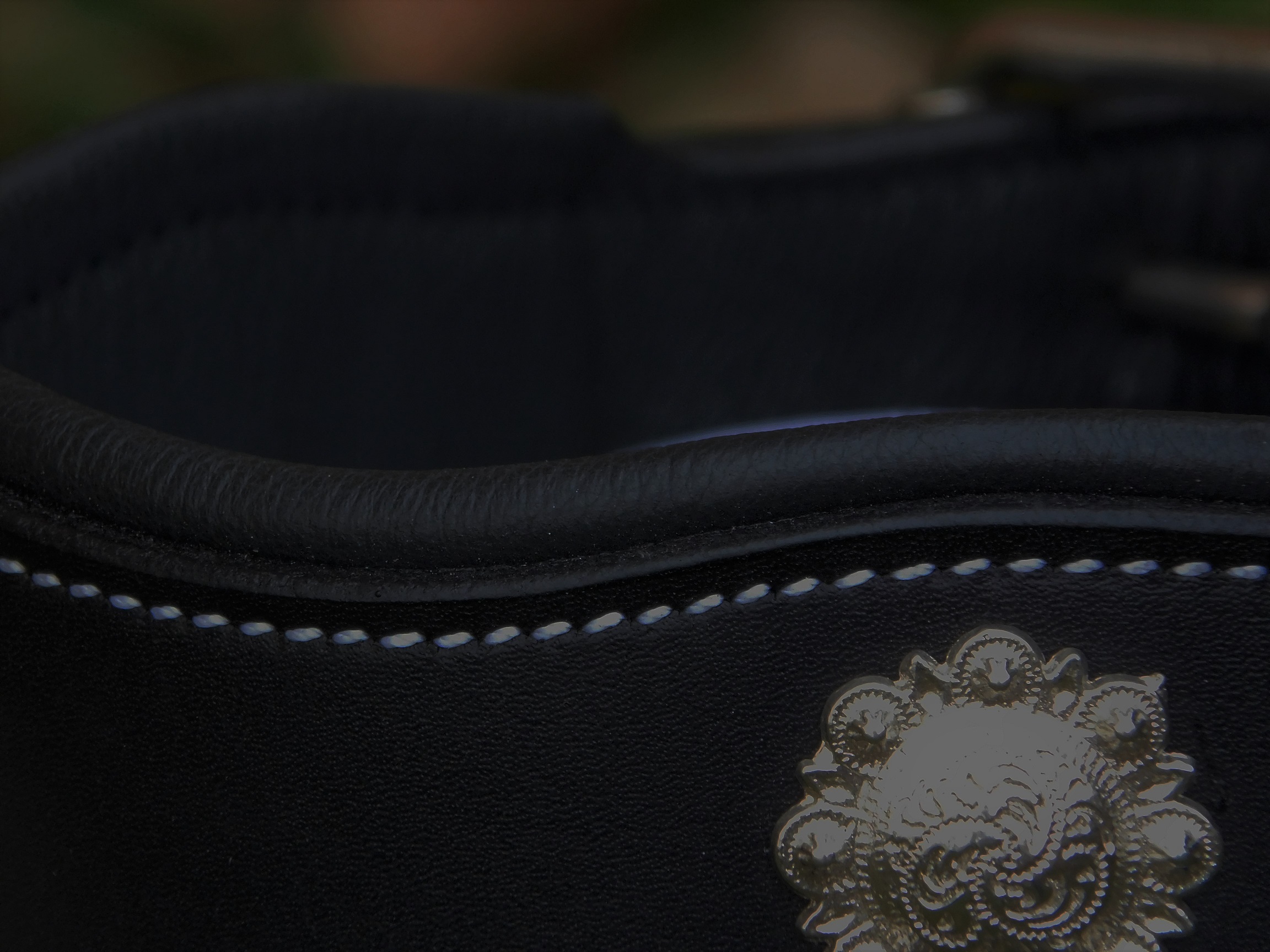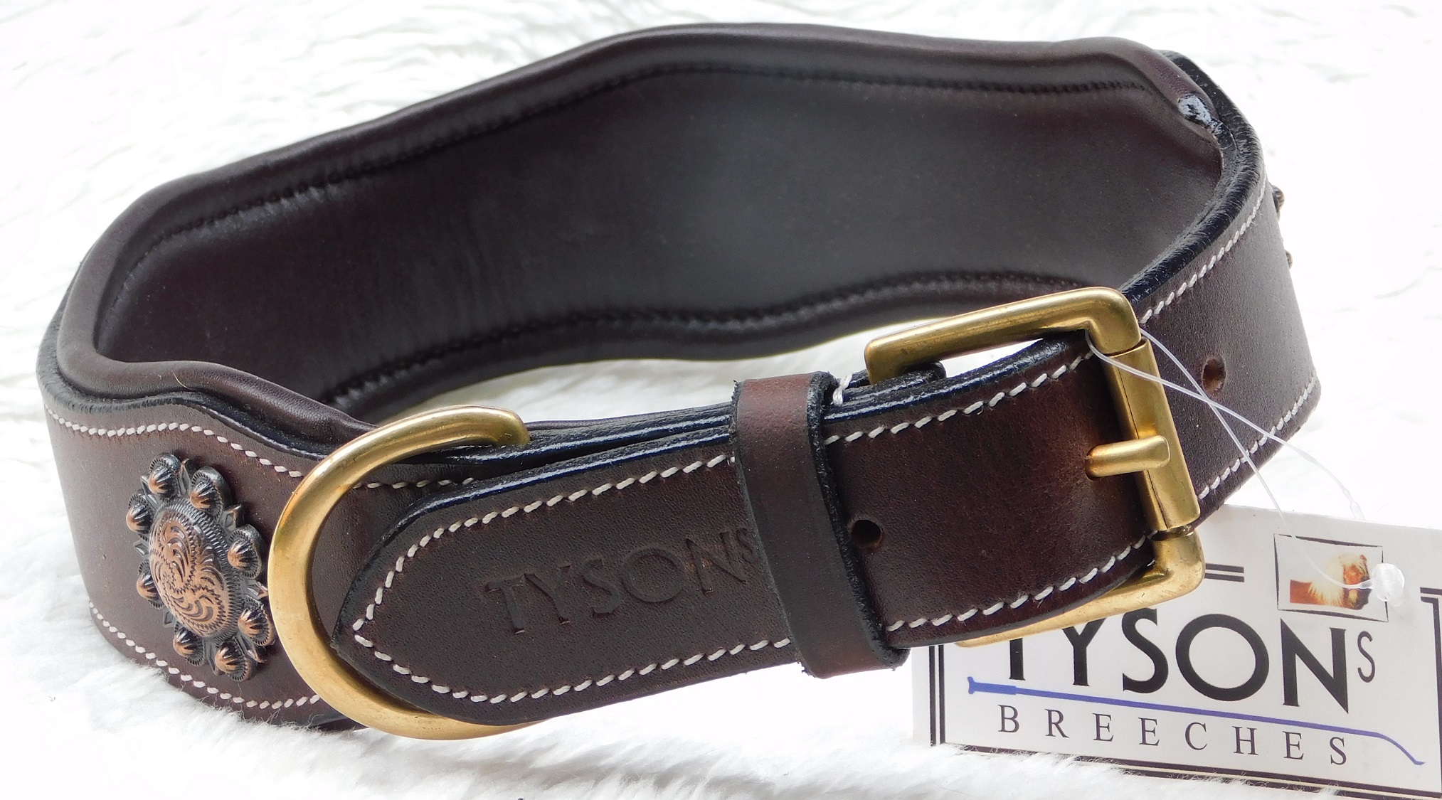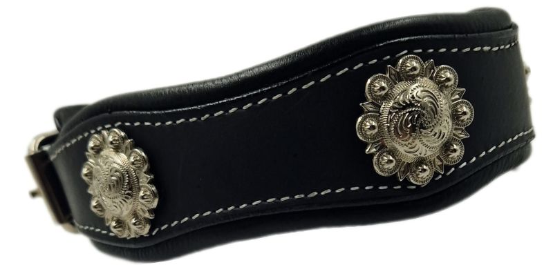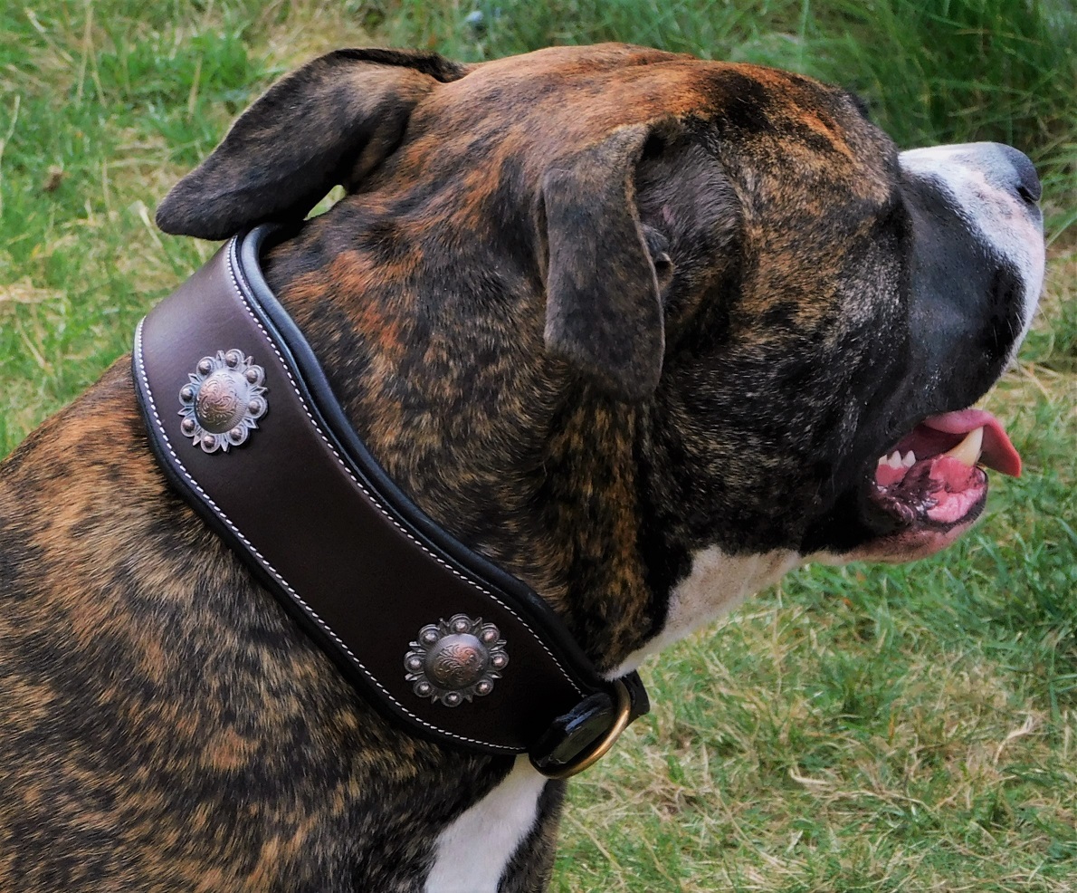 WAVE Halsband LEDER Braun- in Wellen Form mit Conchos in Sonnenform.