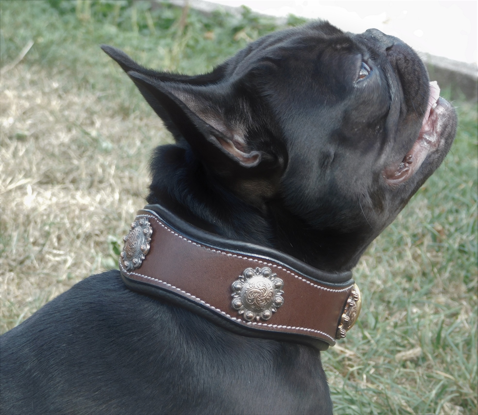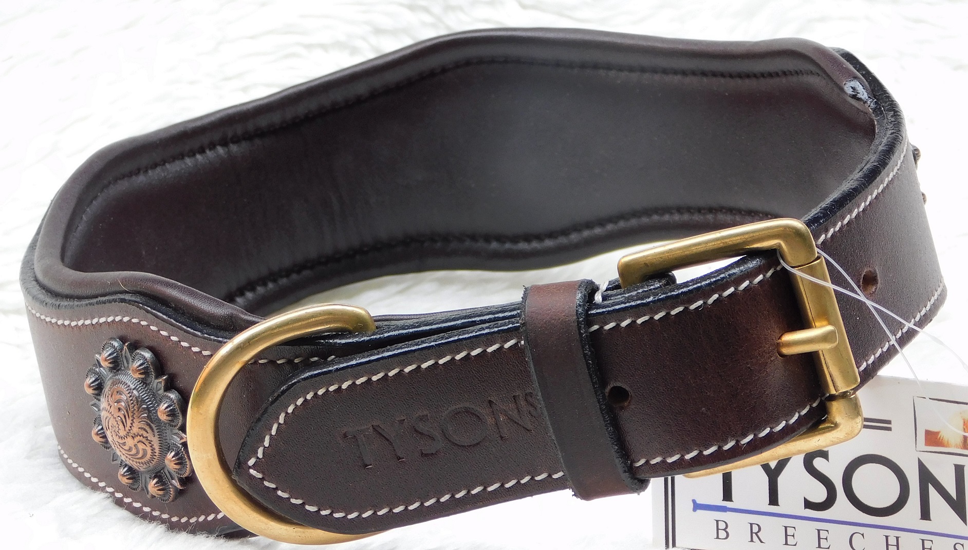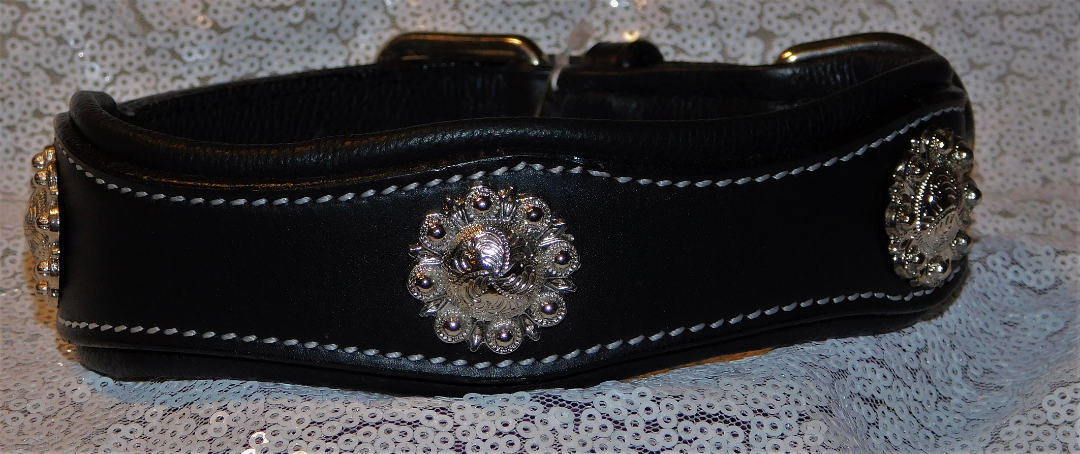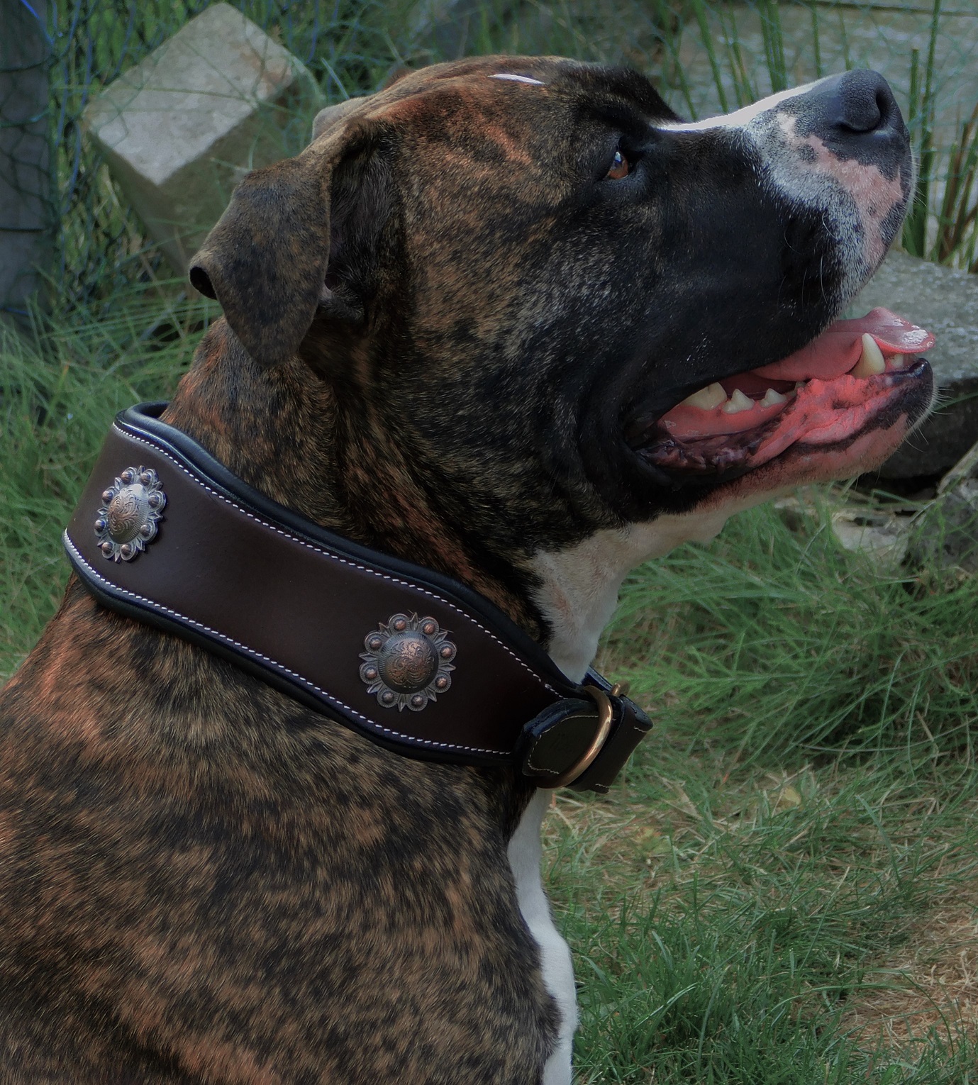 WAVE Halsband LEDER Braun- in Wellen Form mit Conchos in Sonnenform.