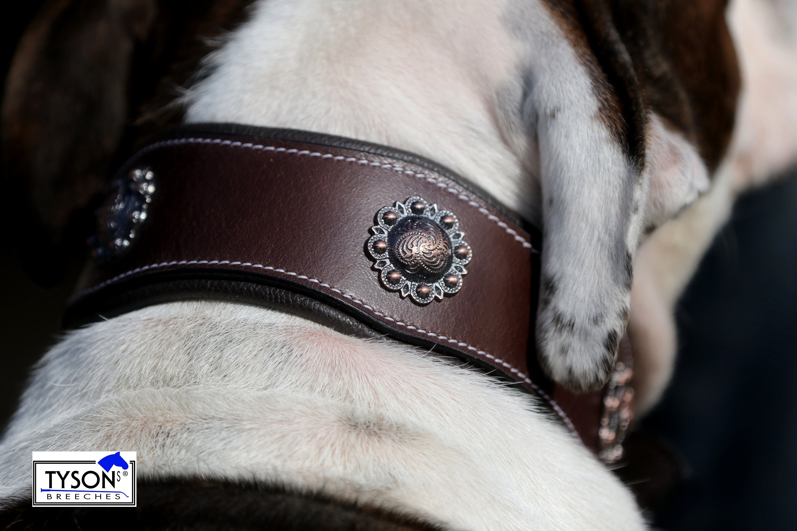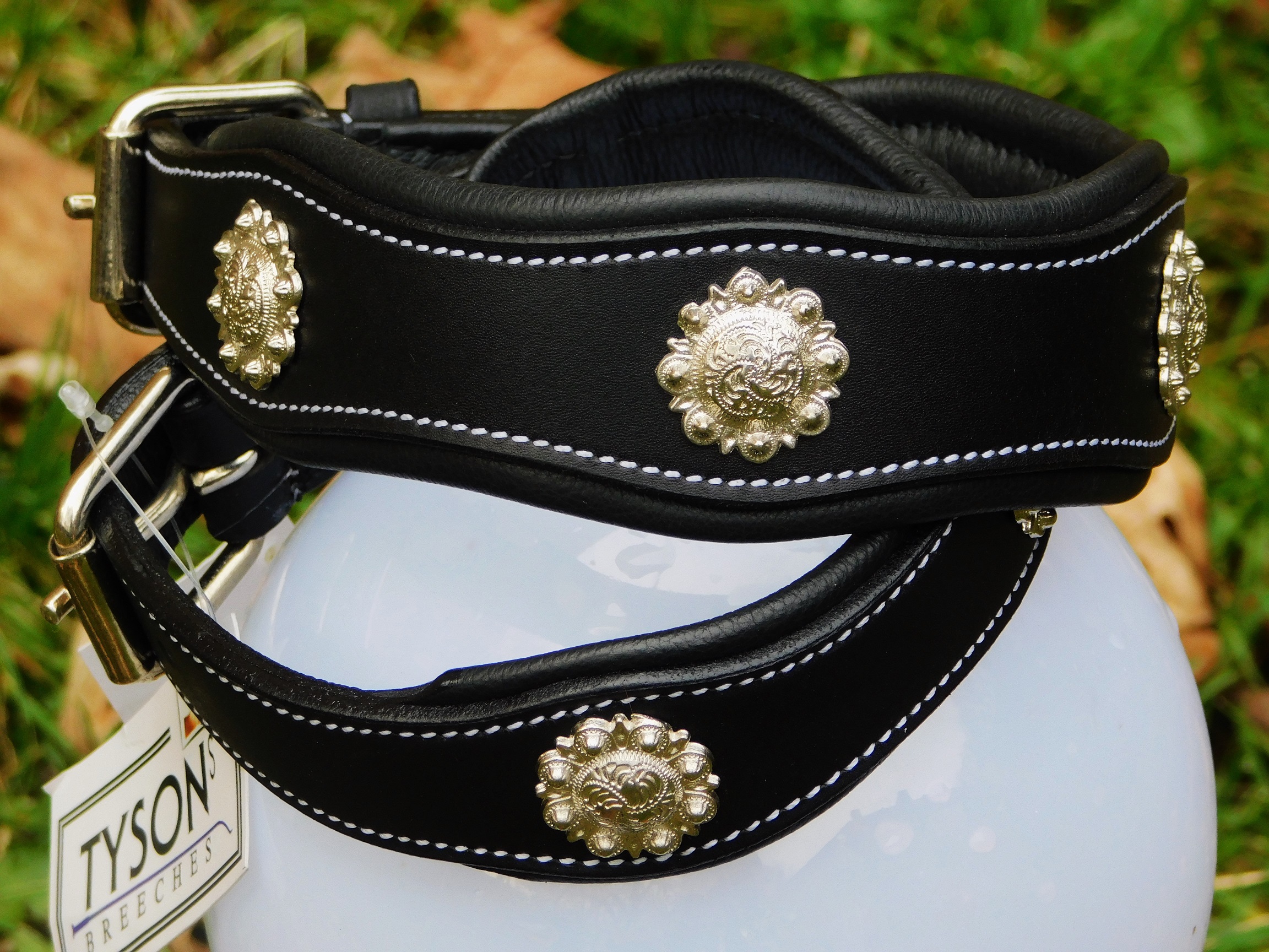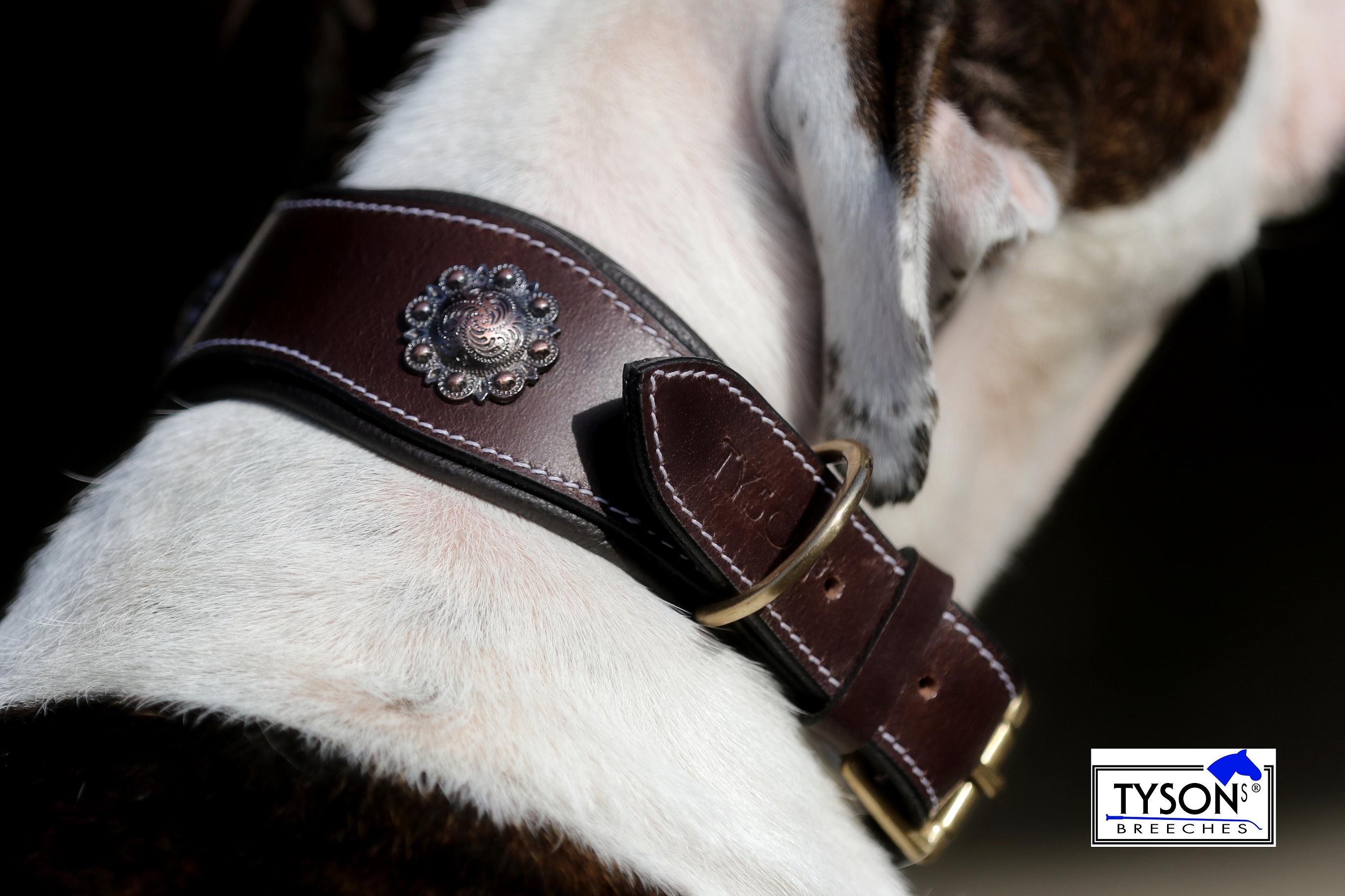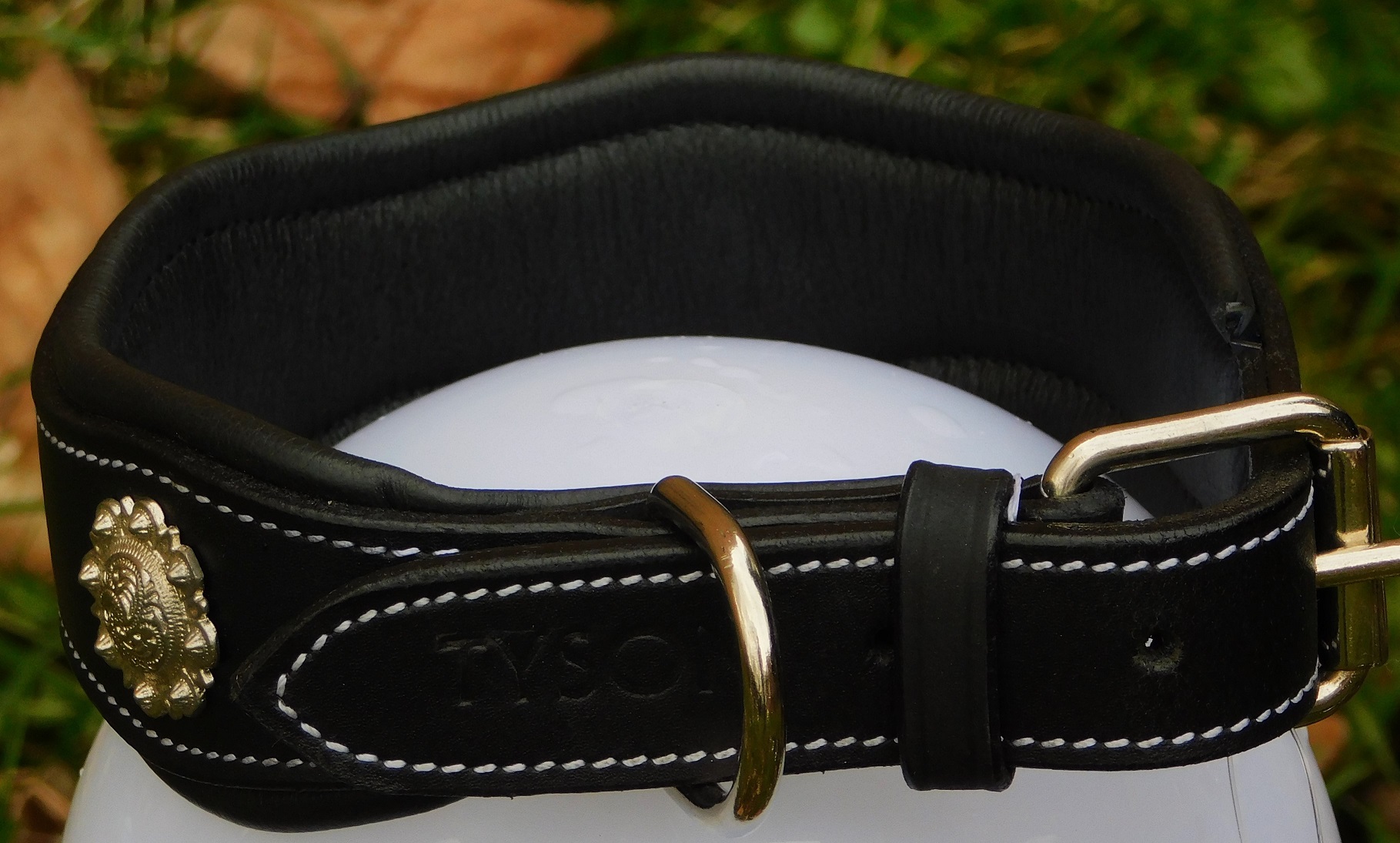 WAVE Halsband LEDER Braun- in Wellen Form mit Conchos in Sonnenform.