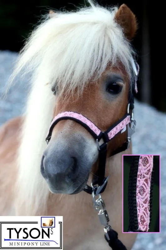 Zauberhaftes Halfter für Minishettys & Fohlen – Glitzertraum in Schwarz / Rosa