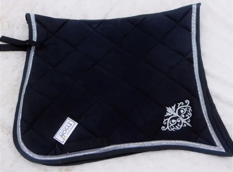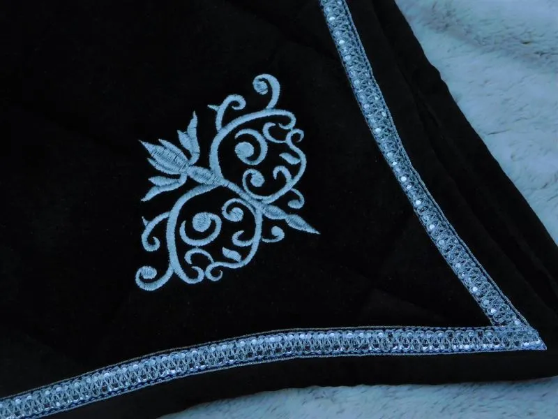 Samt Schwarz - Glitzer Bordüre ( Silberfarben)