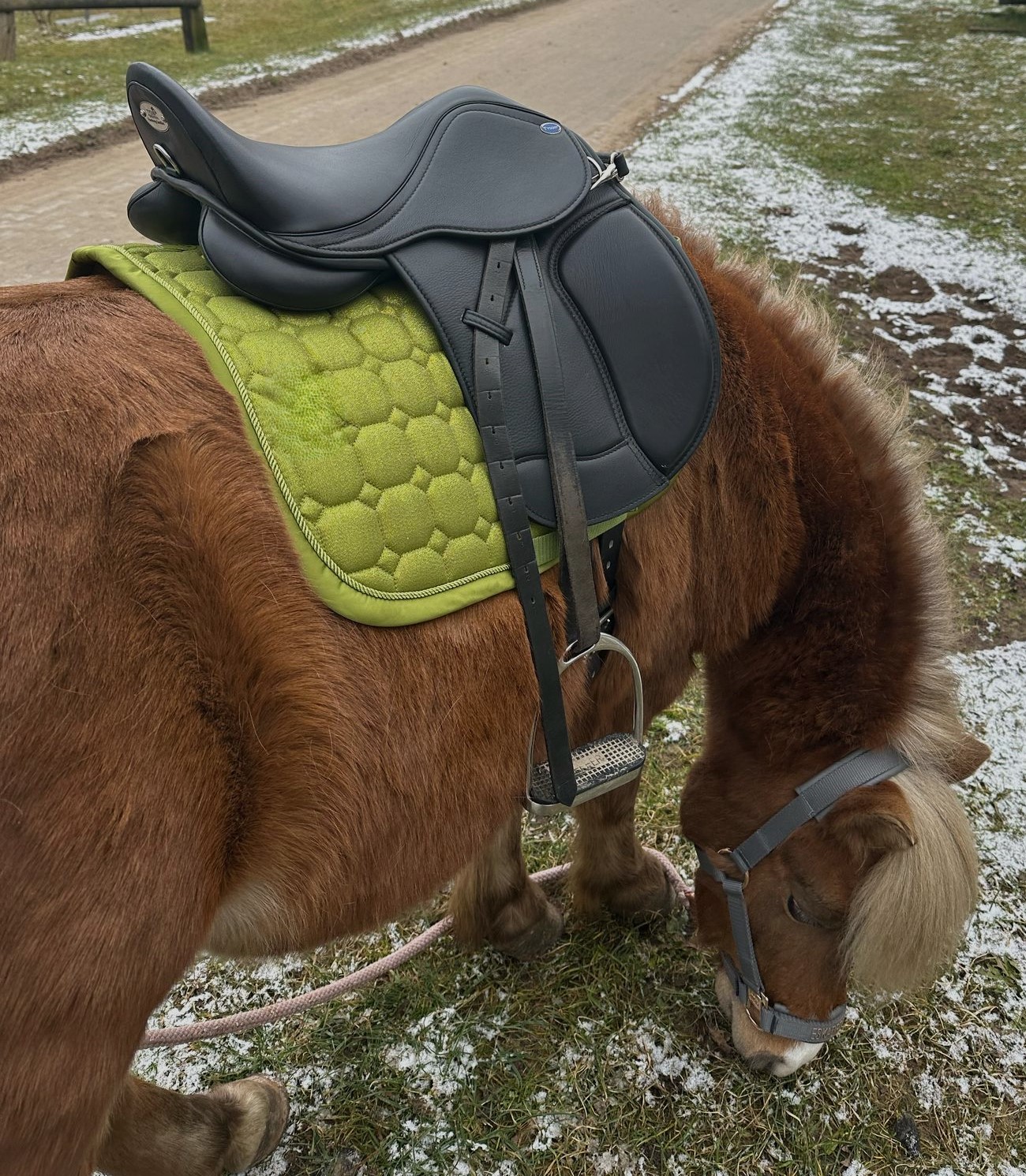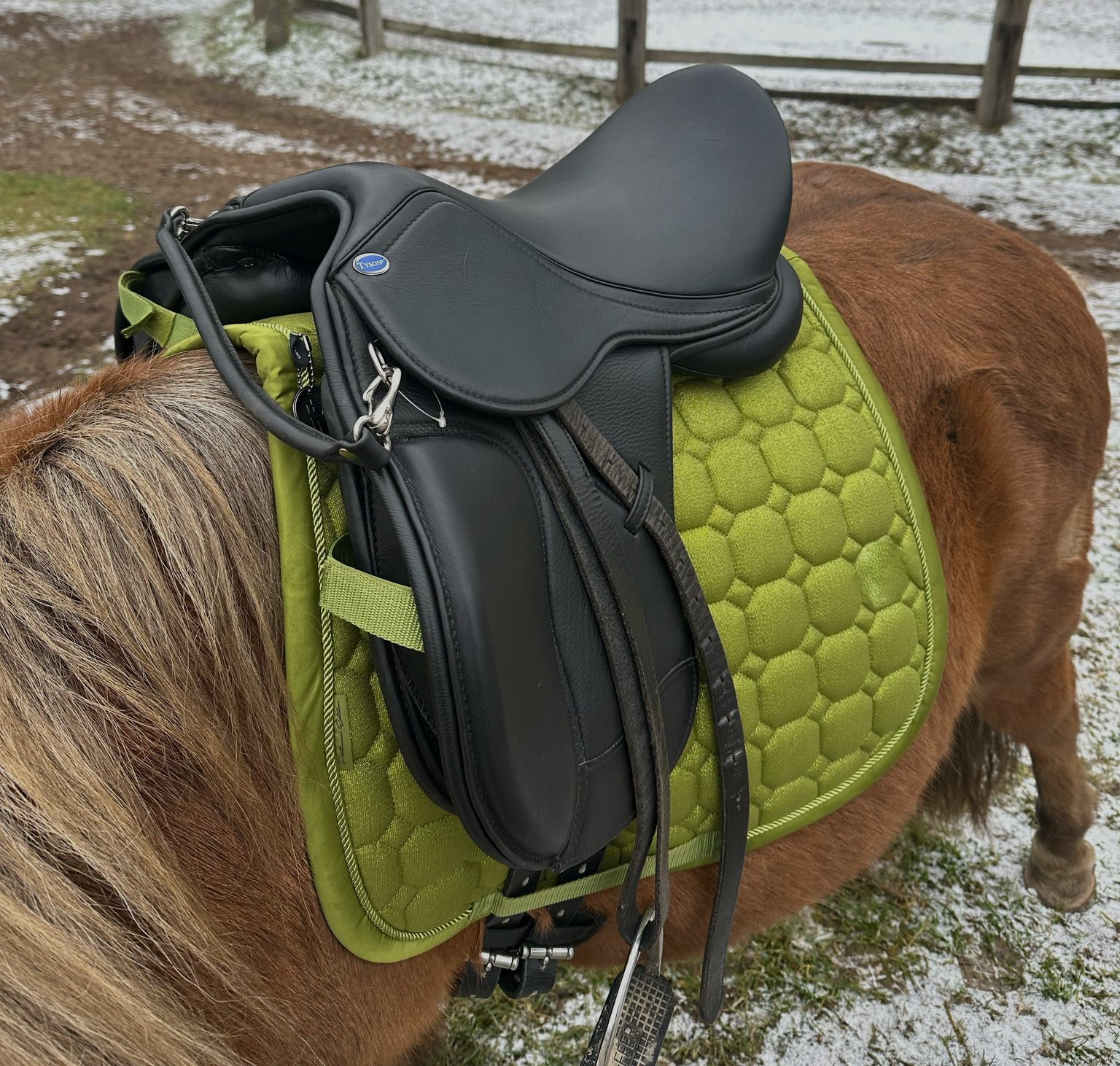 Inclusive 5 Kopfeisen - Kinderleicht umzubauen! Der Sattel hat Sattelpolster / Scheifriemenöse + D - Ring zum befestigen von Hilfszügeln. Breiter Wirbelkanal - Hohe Widerristfreiheit Unter dem Sattelblatt befinden sich 2 Gurtstrupfen je 2,5 cm breit. 14 Zoll = 35 cm Länge Sattelblatt ab Steigbügelhalterung ~ 28,5 cm Breite ~ 24 cm Mitgeliefert werden 5 Kopfeisen Circa Maße !