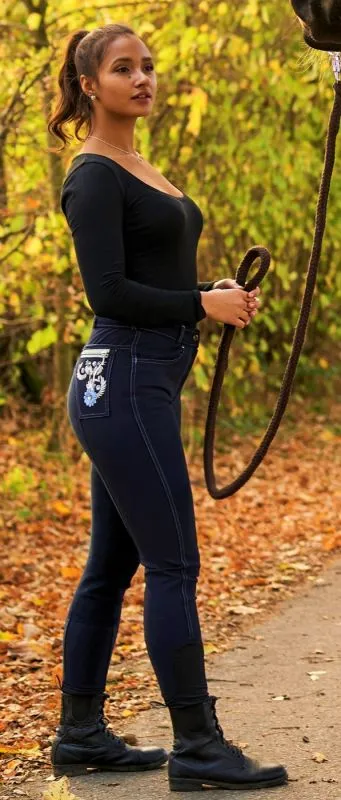 3/4 Vollbesatz Reithose FLEUR | | | Reithose " Fleur " mit wunderschöner Bestickung + Glitzer an beiden Gesäßtaschen. | | Schlupfenden Reithose - Vollbesatz | Vorne 2 Einschubtaschen. Hinten ein wunderschöner Stick, passend zu Farbe. Mit YKK Zipper. | .jpg)