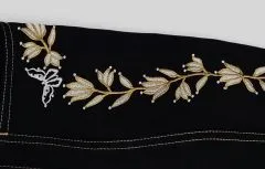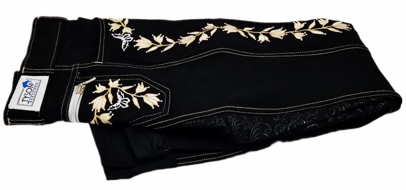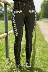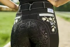 Hochbund Vollbesatz Grip Reithose " FLORENCE" | | Modell FLORENCE | | Elegante Damen Reithose . Mit aufwendiger Stickerei | Stickerei von Tascheneinschub bis kurz über das Knie.Stickerei = Beige / Weiß Diese Stickerei findet sich an an den Gesäßtaschen wieder. Gesäßtaschen mit Zipper. | Farbe : SCHWARZ - Ziernähte in weiß. Stick = Beige / Weiß | Grip Vollbesatz. Schlupenden an den Beinen. | Tascheneinschube vorne. Hinten je 1 Gesäßtasche mit Zipper. | Sie ist stretchig und anpassungsfähig und hat eine Super Passform | | Hinweis zu Hochbundreithosen: | Der Hochbund gibt nach = Kein Einzwängen!! Eine Hochbund Reithose soll nach dem Waschen | wie eine gut sitzende Jeans getragen werden...dann nach ~ 20 Min. gibt sie nach ! | PFLEGEHINWEIS: | Bbei 30 Grad Waschbar. Nicht Tümmeln. | Die passende Schabracke " Florence" führen wir auch. | Material: | Stoff: 60 % Polyster 33 % Viscose 7 % Spandex | Besatz: Silicone