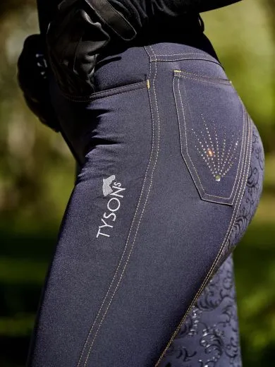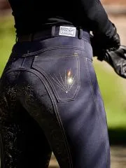 Dunkelblaue Reithose mit einem Voll Grip in einem schönen Muster. | |||||