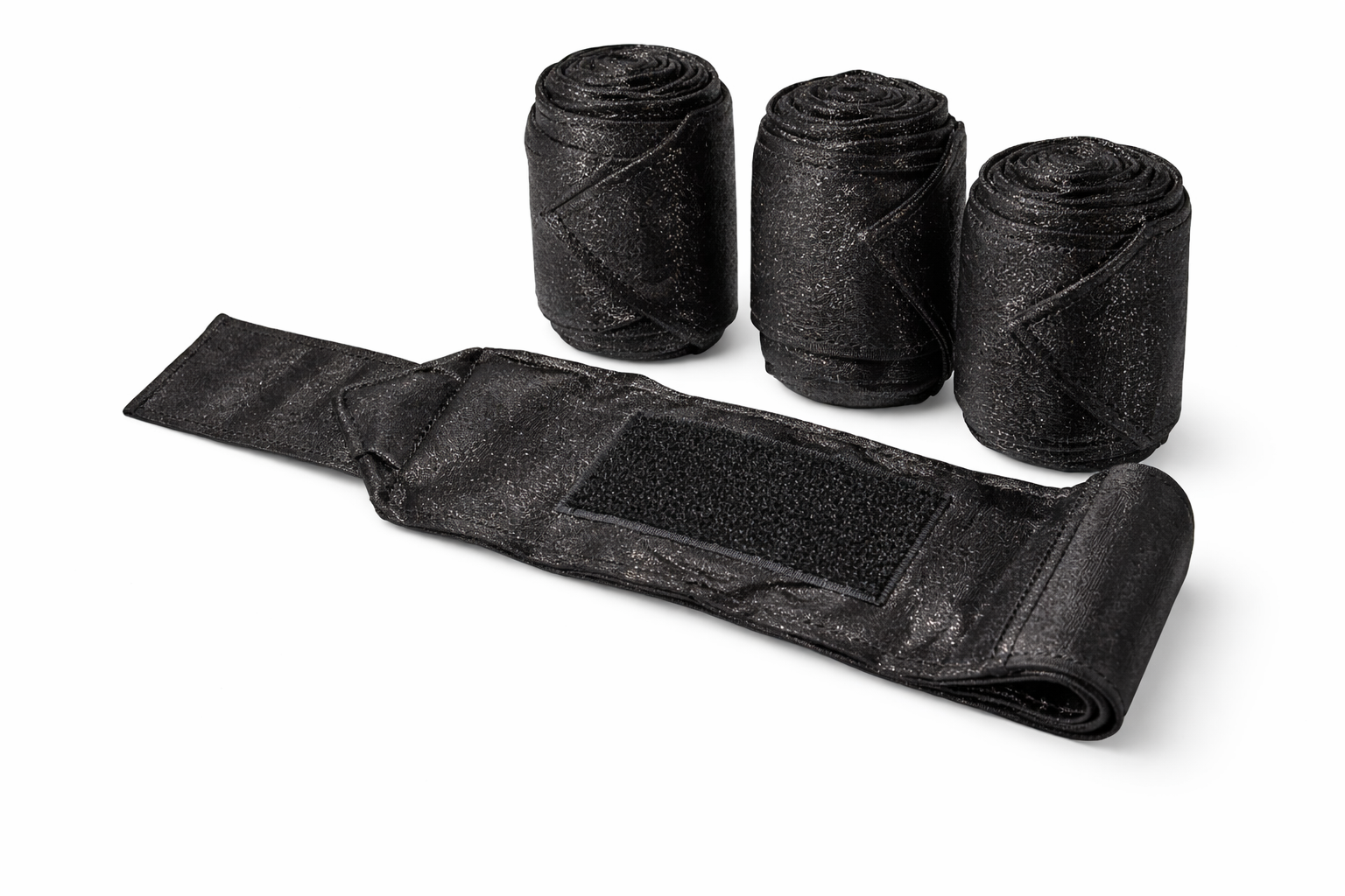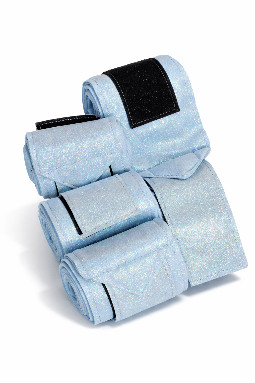 StartseiteMiniponySet 4 Stück Bandagen Sunny Glitzer Schwarz / Schwarz, Schwarz Silber Farb. Lila Rot Rosa Braun Hellblau Minishetty 1 Meter