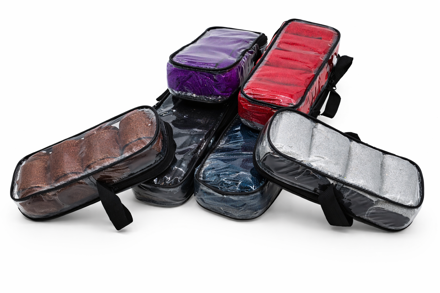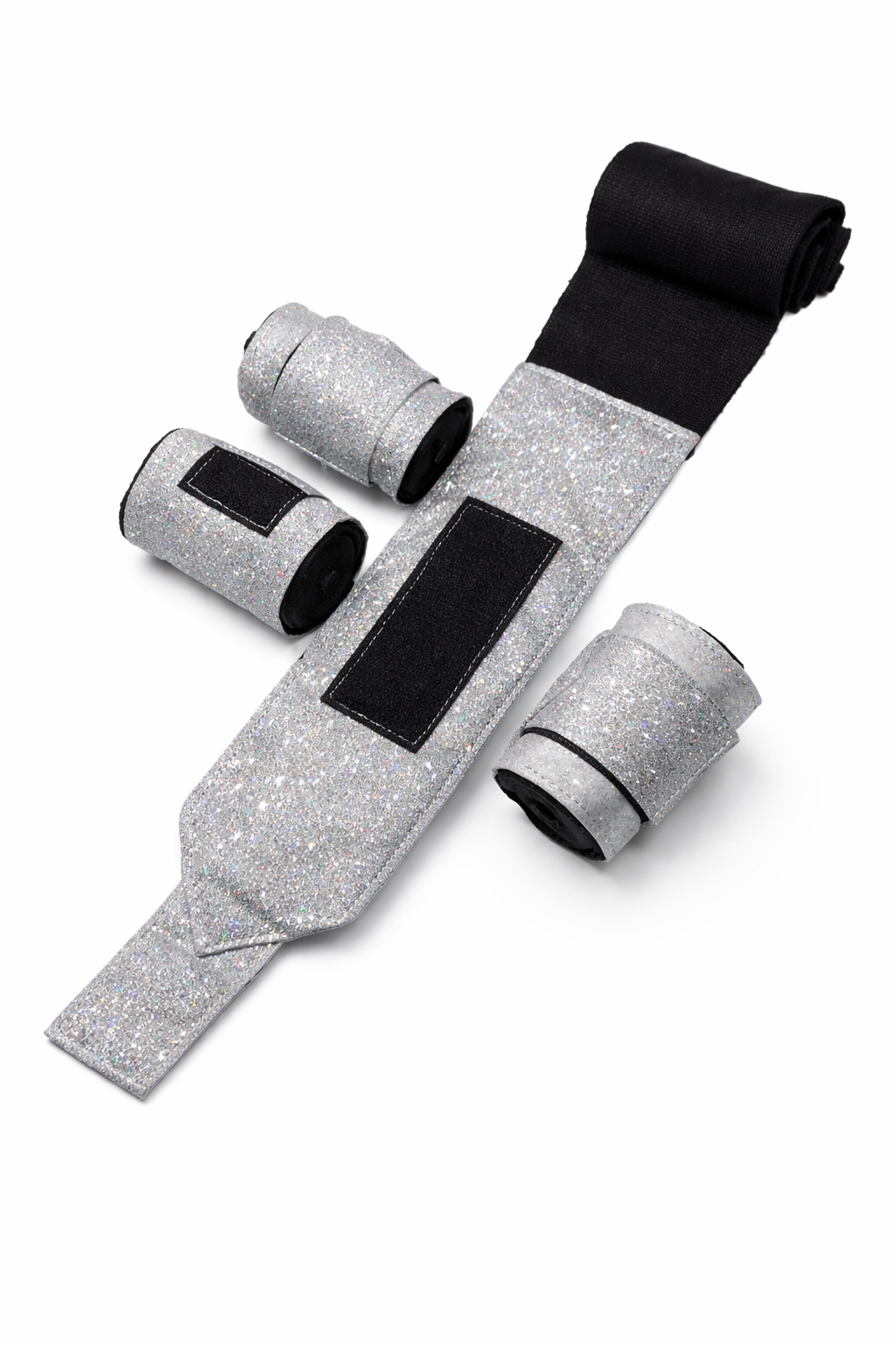 Am Ende ~ 30 cm Glitzermaterial Klett zum fixieren. IMMER 4 Stück im SET - In einem Poly Zipper Bag- In den Farben ( Glitzer) Rot , Rosa, Lila, Hellblau, Schwarz/ Schwarz oder Schwarz Silberfarben
