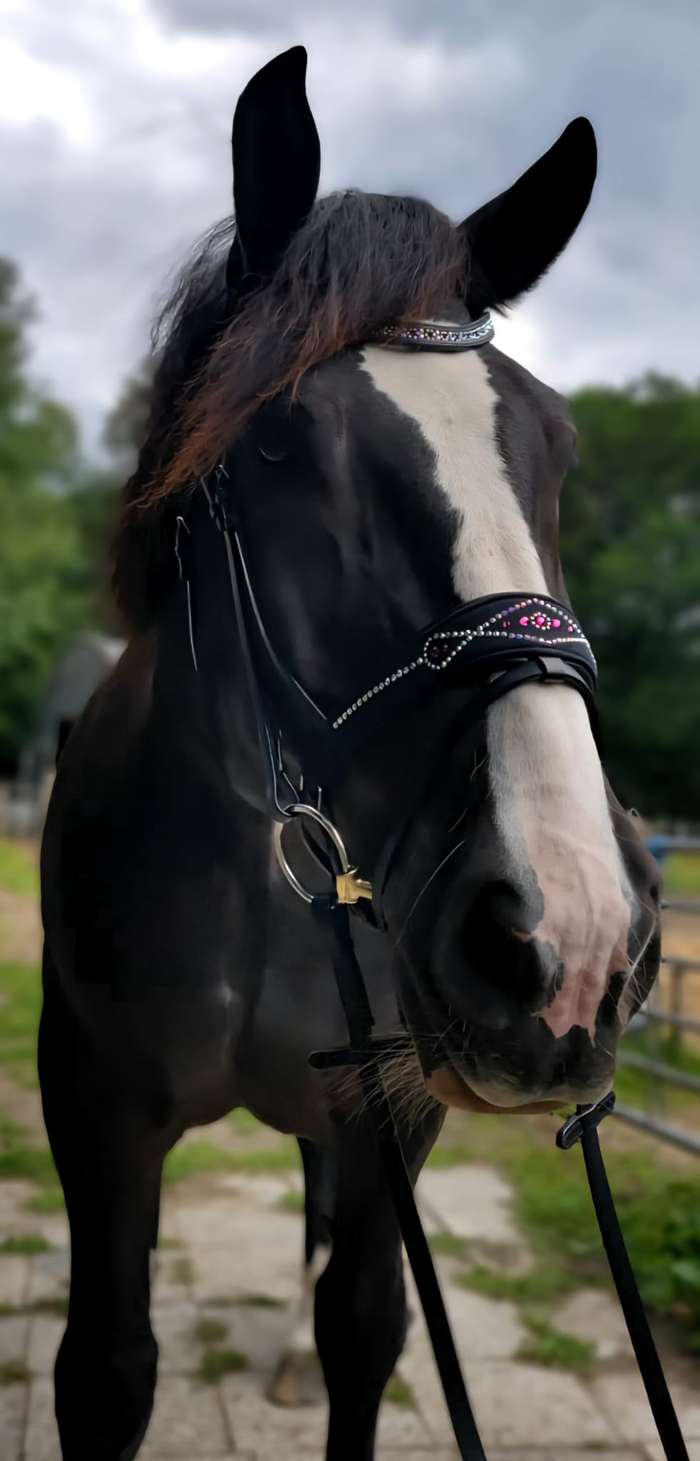 Black Pearl Multi Trense geteiltes Genick Schwarz Butterweich VB WB X Full Noriker Kaltblut Glitzer Strass