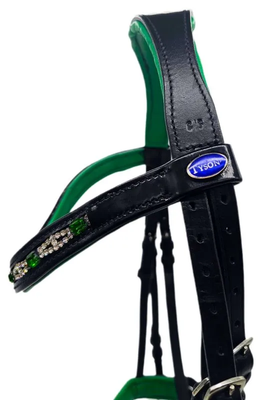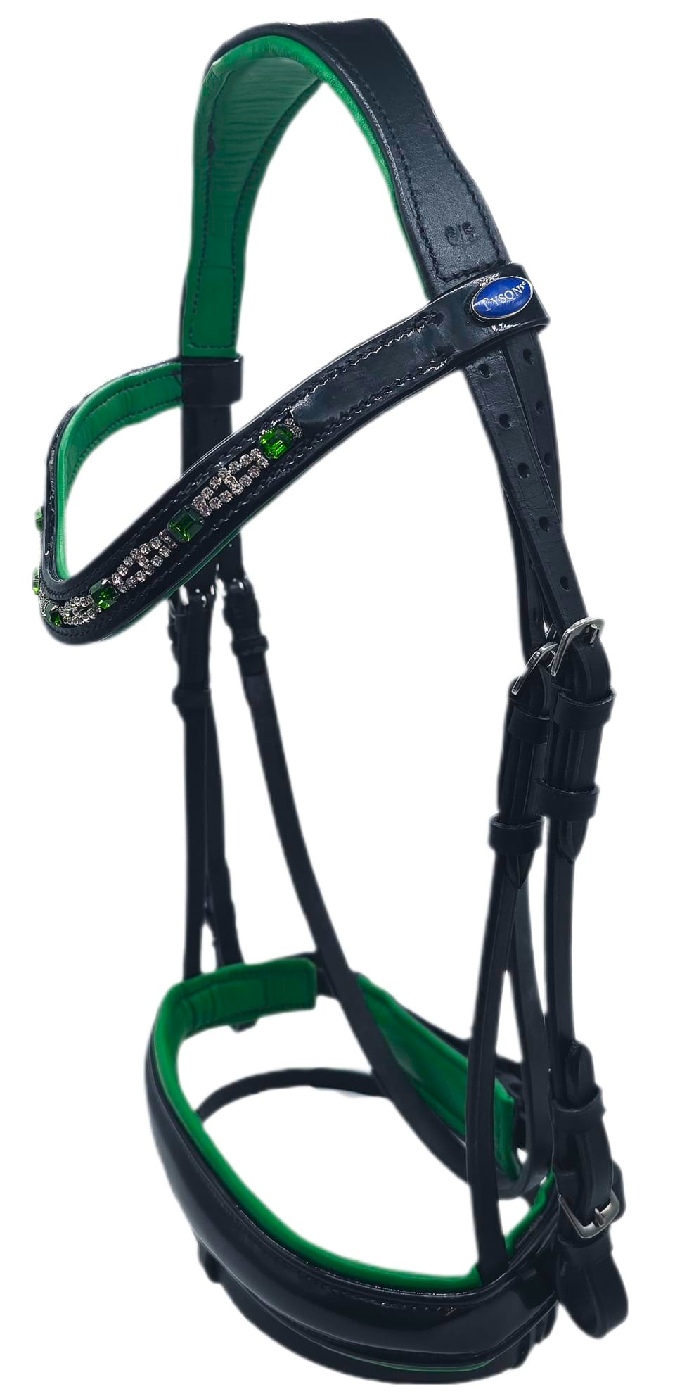 Leder Trense "SMARAGD" Grün mit Strass Stirnband Lack / Leder | |||||||