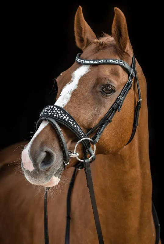Schwedische Umlenkverschnallung. Nasenriemen weiche unterpolstert.