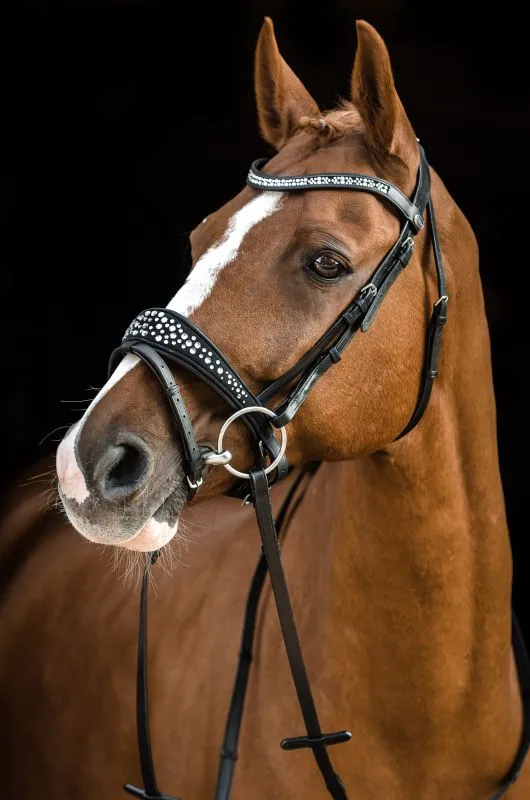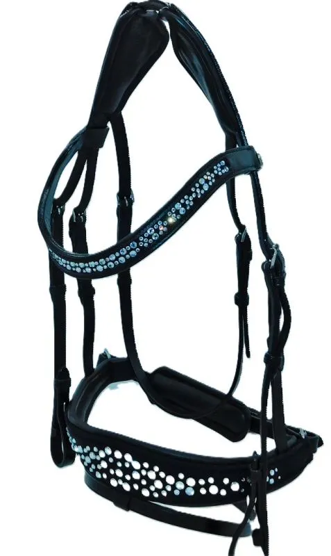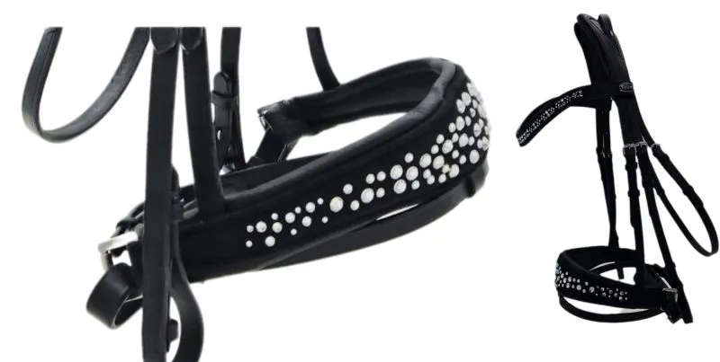 White Black PEARL Trense mit Genick Patches ( Geteiles Genickstück)