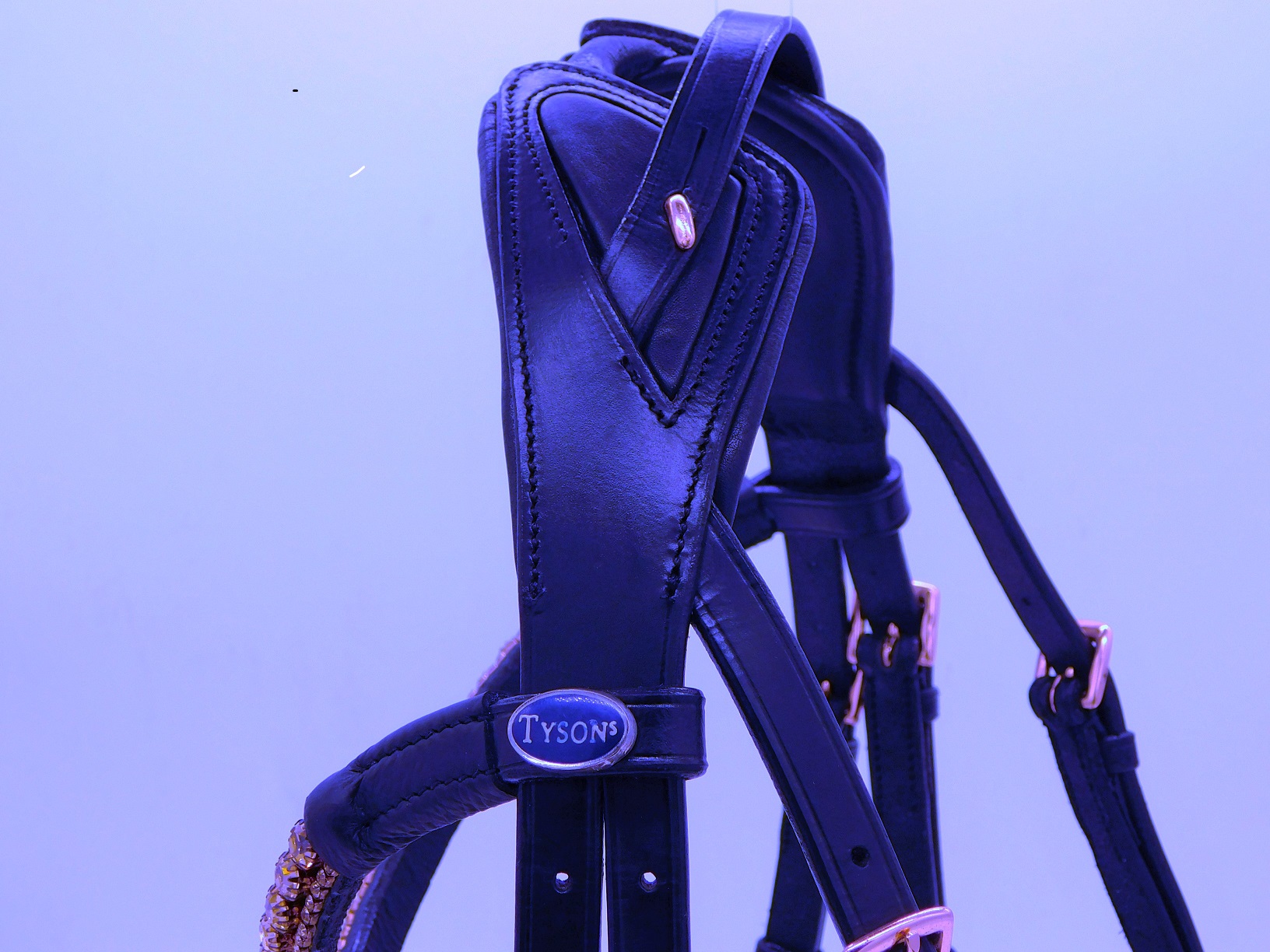 Schwedische Umlenkverschnallung. Nasenriemen, LACK, weich unterpolstert.