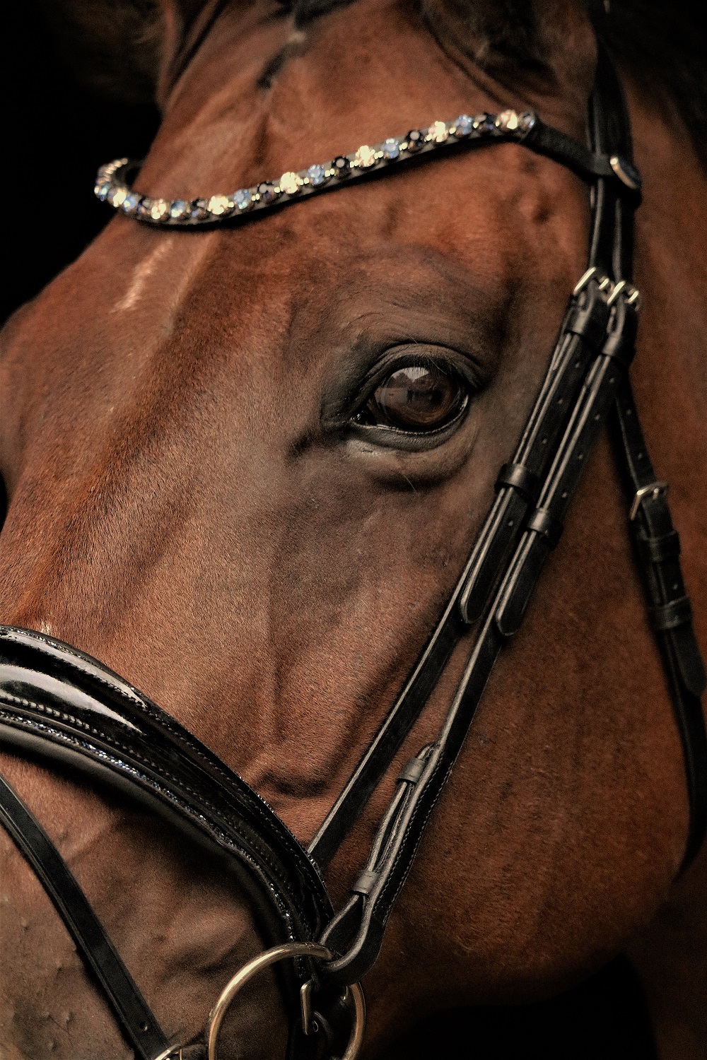 Nasenriemen, Lack umrandet von Glitzer in Blau / Schwarz