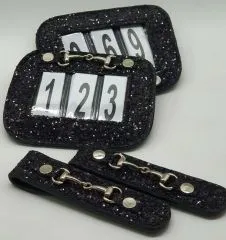 Turnier SET Kopfnummer Kopfnummern Clip Roségold Rosegold Glitter Glitzer Gebiss im Set möglich Rose