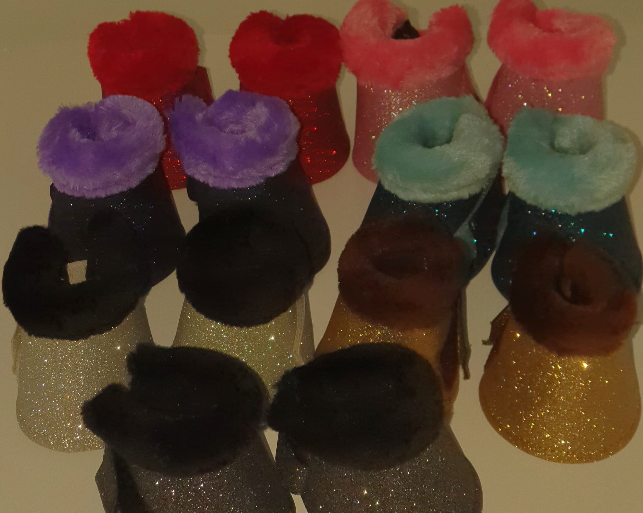 SAL Hufglocken Sunny Minishetty Shetty Hellblau / Petrol / Lila Plüsch Neopren 1 Paar = 2 Stück