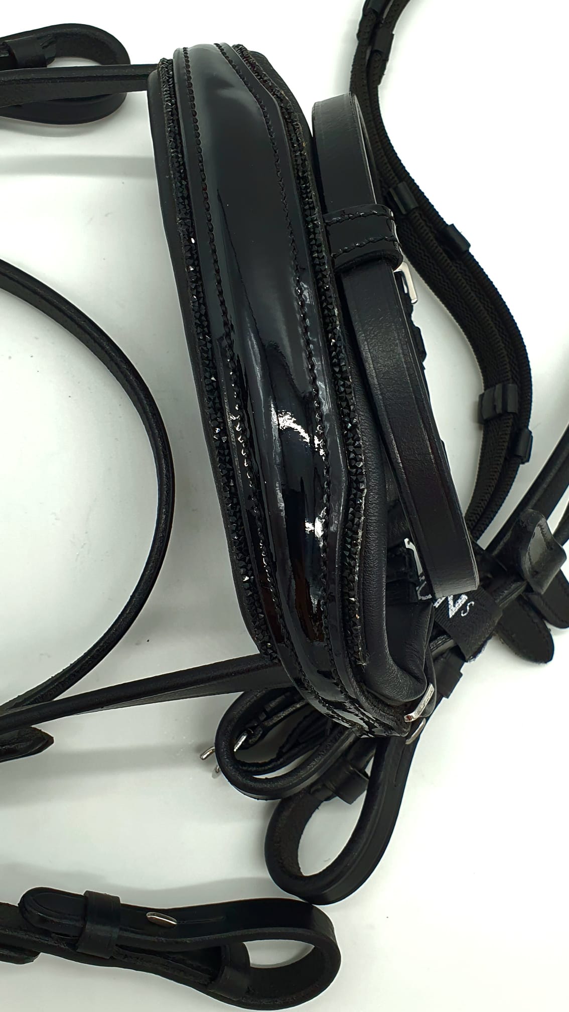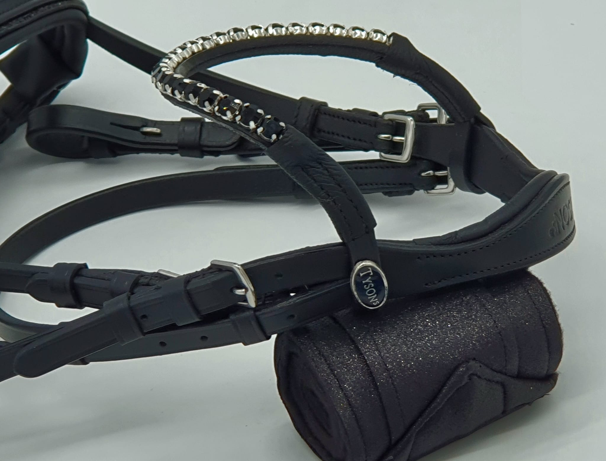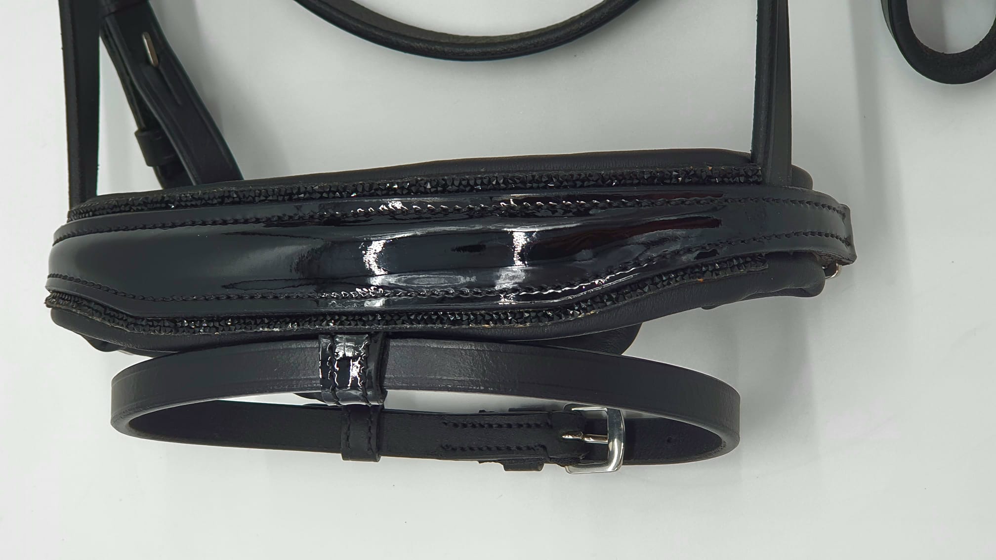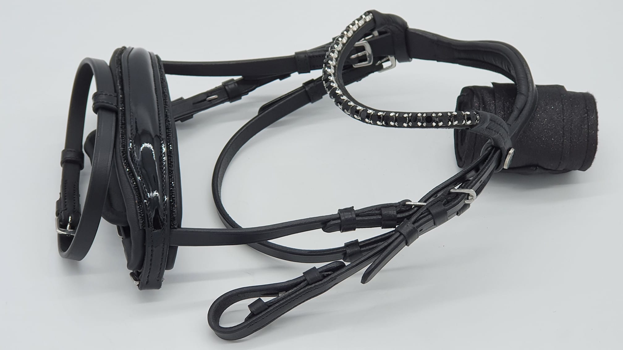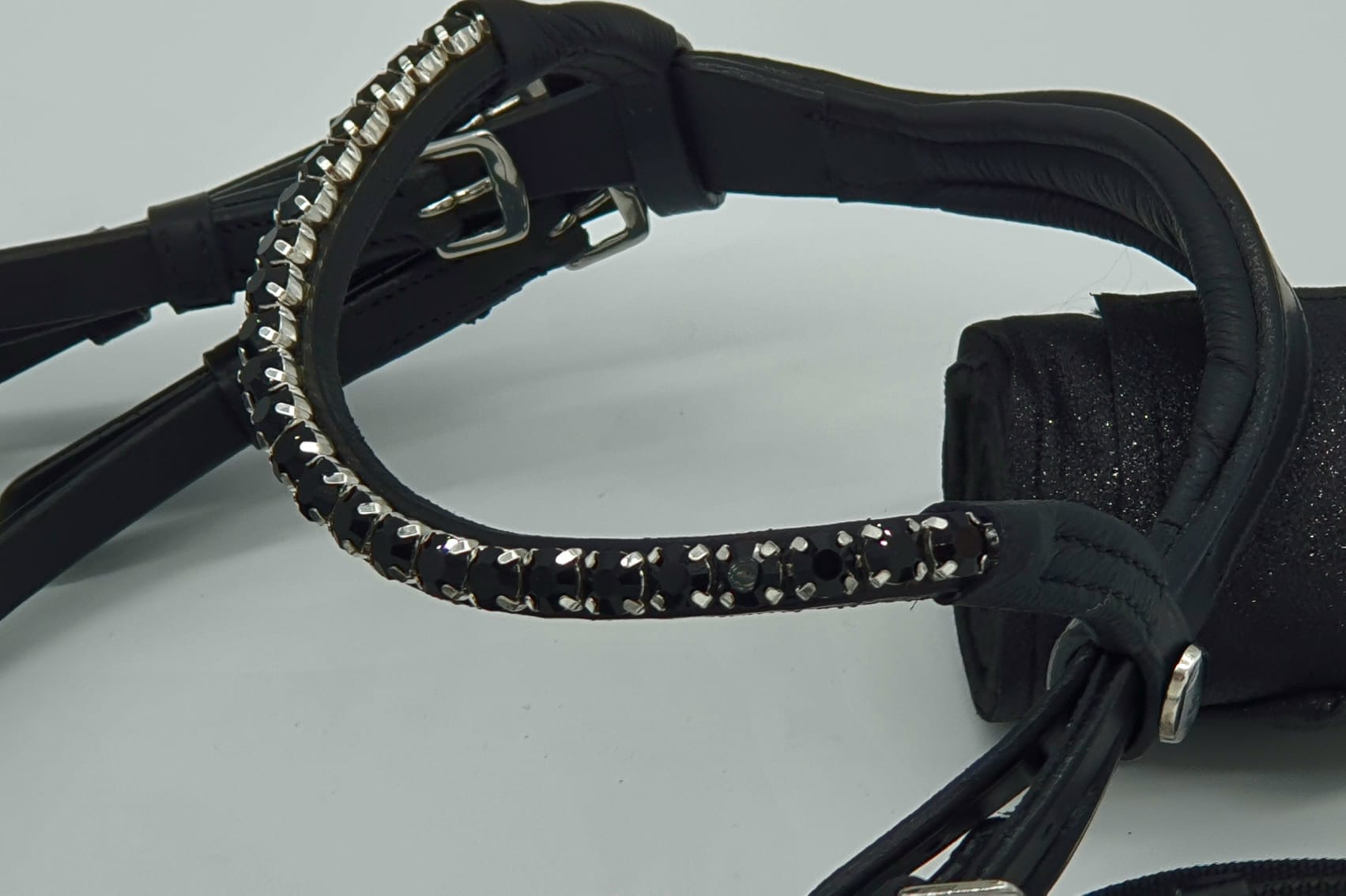 Stirnriemen geschwungen, Schwarze Steinchen, Silberfarben eingefasst.